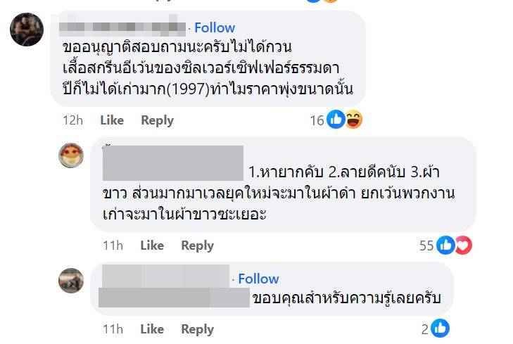 “ขอนุญาติสอบถามนะครับไม่ได้กวน เสื้อสกรีนอีเว้นของซิลเวอร์เซิฟเฟอร์ธรรมดา ปีก็ไม่ได้เก่ามาก(1997)ทำไมราคาพุ่งขนาดนั้น”