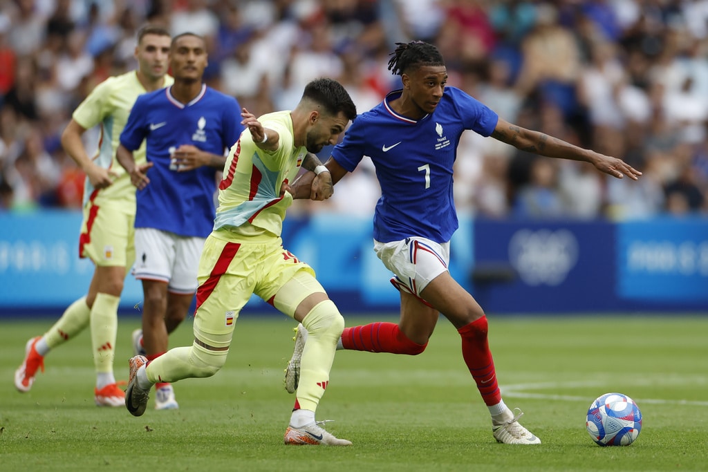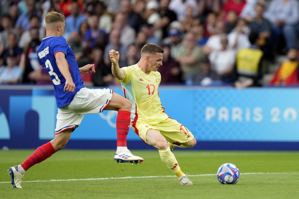 Spain’s Alex Baena, left, and France’s Michael Olise vie for the ball during the men’s soccer gold medal match between France and Spain at the Parc des Princes during the 2024 Summer Olympics, Friday, Aug. 9, 2024, in Paris, France. (AP Photo/Aurelien Morissard)Spain’s Eric Garcia, left, goes for a header with France’s Jean-Philippe Mateta, right, during the men’s soccer gold medal match between France and Spain at the Parc des Princes during the 2024 Summer Olympics, Friday, Aug. 9, 2024, in Paris, France. (AP Photo/Vadim Ghirda)France’s Jean-Philippe Mateta, left, celebrates with his teammates after scoring the third goal during the men’s soccer gold medal match between France and Spain at the Parc des Princes during the 2024 Summer Olympics, Friday, Aug. 9, 2024, in Paris, France. (AP Photo/Aurelien Morissard)Spain’s Sergio Gomez, right, and France’s Adrien Truffert fight for the ball during the men’s soccer gold medal match between France and Spain at the Parc des Princes during the 2024 Summer Olympics, Friday, Aug. 9, 2024, in Paris, France. (AP Photo/Francisco Seco)Spain’s Pablo Barrios, right, and France’s Adrien Truffert fight for the ball during the men’s soccer gold medal match between France and Spain at the Parc des Princes during the 2024 Summer Olympics, Friday, Aug. 9, 2024, in Paris, France. (AP Photo/Francisco Seco)France’s Desire Doue controls the ball during the men’s soccer gold medal match between France and Spain at the Parc des Princes during the 2024 Summer Olympics, Friday, Aug. 9, 2024, in Paris, France. (AP Photo/Francisco Seco)Spain’s Sergio Camello, center, celebrates after scoring his side’s fourth goal during the men’s soccer gold medal match between France and Spain at the Parc des Princes during the 2024 Summer Olympics, Friday, Aug. 9, 2024, in Paris, France. (AP Photo/Vadim Ghirda)Spain’s Sergio Camello scores his team’s fourth goal during the men’s soccer gold medal match between France and Spain at the Parc des Princes during the 2024 Summer Olympics, Friday, Aug. 9, 2024, in Paris, France. (AP Photo/Nikos Seimenakis)Spain’s Sergio Camello scores the fourth goal during the men’s soccer gold medal match between France and Spain at the Parc des Princes during the 2024 Summer Olympics, Friday, Aug. 9, 2024, in Paris, France. (AP Photo/Aurelien Morissard)France’s Maghnes Akliouche reacts after losing the men’s soccer gold medal match against Spain at the Parc des Princes during the 2024 Summer Olympics, Friday, Aug. 9, 2024, in Paris, France. (AP Photo/Francisco Seco)Spain’s Sergio Camello, center, celebrates with teammates after scoring his team’s fifth goal during the men’s soccer gold medal match between France and Spain at the Parc des Princes during the 2024 Summer Olympics, Friday, Aug. 9, 2024, in Paris, France. (AP Photo/Francisco Seco)