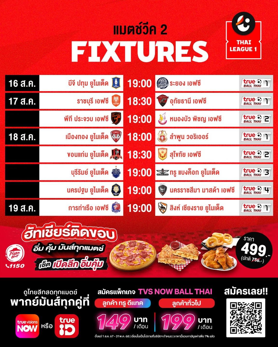 ตารางแข่งขัน รีโว่ 2024/25 ไทยลีก โปรแกรมฟุตบอลไทยลีก สัปดาห์ที่ 2 ทุกคู่ถ่ายทอดสดทาง AIS Play และ True Ball Thai