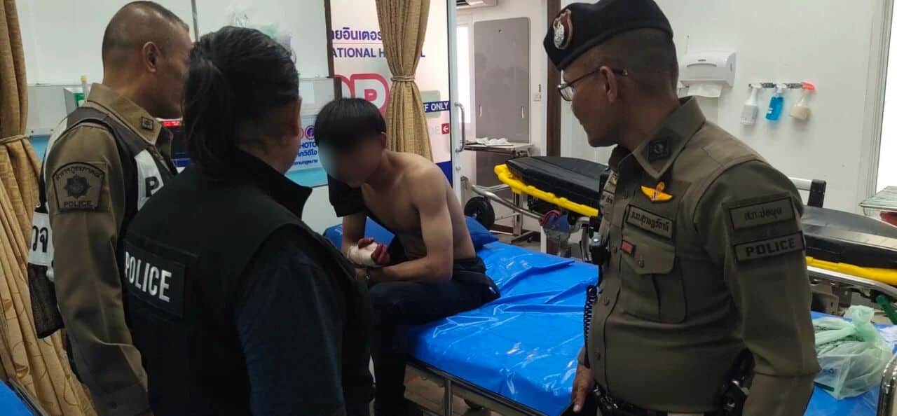 เมื่อถึงที่เกิดเหตุพบรอยเลือดกระจัดกระจาย ส่วนผู้ได้รับบาดเจ็บอาการสาหัส เจ้าหน้าที่ทีมแพทย์ได้นำตัวส่งโรงพยาบาลไปก่อนแล้ว ขณะที่ผู้ก่อเหตุเป็นชายไทย ได้ถูกตำรวจควบคุมตัวเอาไว้ได้หลังก่อเหตุ พร้อมด้วยอาวุธมีด ทราบชื่อคือ นายโชคชัย อินทรักษ์ หรือ เอก อายุ 23 ปี ภูมิลำเนาอำเภอนาสาร จังหวัดสุราษฎร์ธานี พบว่าที่มือขวามีบาดแผลฉกรรจ์จากถูกของมีคมบาด