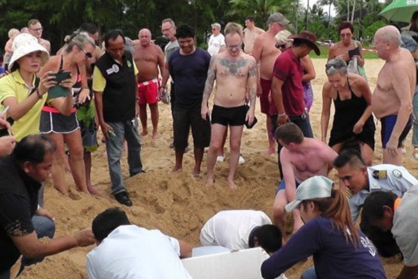 พังงา – เจ้าหน้าที่ย้ายไข่เต่ามะเฟืองไปอยู่ในที่ปลอดภัยแล้ว พบวางไข่ มากถึง 93 ฟอง แต่เก็บได้ จำนวน 89 ฟอง แตก 4 ฟอง ชี้สถิติการพบเต่ามะเฟืองขึ้นวางไข่ล่าสุดเมื่อ 6 ปีที่ผ่านมา