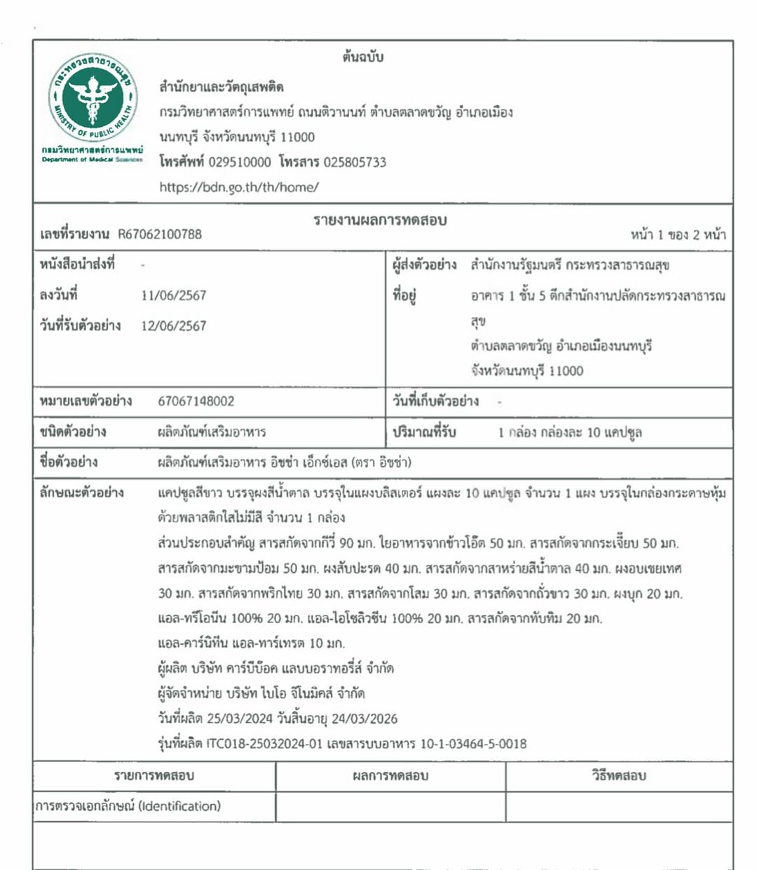 ล่าสุดกรมวิทยาศาสตร์การแพทย์ โดยสำนักยาและวัตถุเสพติด ซึ่งเป็นหน่วยงานที่ได้รับมอบหมายให้เป็นผู้ดำเนินการตรวจหาสารอันตรายในผลิตภัณฑ์อาหารเสริม ITCHA XS (อิชช่า เอ็กซ์เอส) ได้ส่งหนังสือยืนยันผลตรวจออกมาแล้ว ผลปรากฎว่าไม่พบสารอันตราย “ไซบูทรามีน” ตามที่ถูกกล่าวหาในตอนแรก