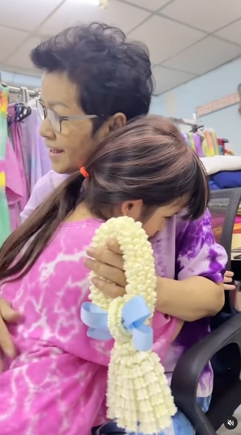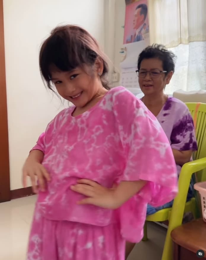 และอีกหนึ่งคลิปที่เผยให้เห็นรอยยิ้มแห่งความสุขที่ยายมีให้หลานรัก ซึ่งนั่งมองและปรบมือเป็นจังหวะให้น้องมียาเต้น ทั้งยังสวมเสื้อลายมัดย้อมคู่กันอีกต่างหาก นอกจากนี้ภรรยาเติ้ล ตะวัน ยังเขียนแคปชั่นสุดเศร้าประกอบคลิปดังกล่าวเอาไว้ว่า “คลิปสุดท้ายของยายกับหลาน ใส่ชุดมัดย้อมที่ยายเพิ่งเย็บให้”