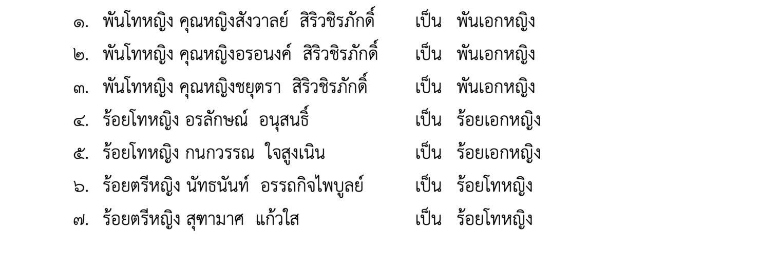 ลำดับที่ 3 ว่าที่ พันตรีหญิง อรอนงค์ สิริวชิรภักดิ์ เป็น พันตรีหญิง