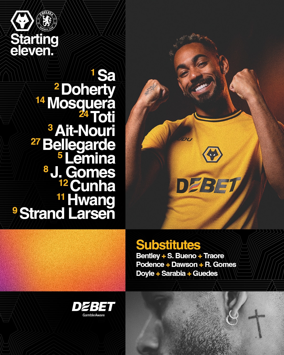 11 ตัวจริง วูล์ฟแฮมป์ตัน พบ เชลซี แข่ง 20.00 น. ฟุตบอลพรีเมียร์ลีก (ลิงก์ดูบอลสด)