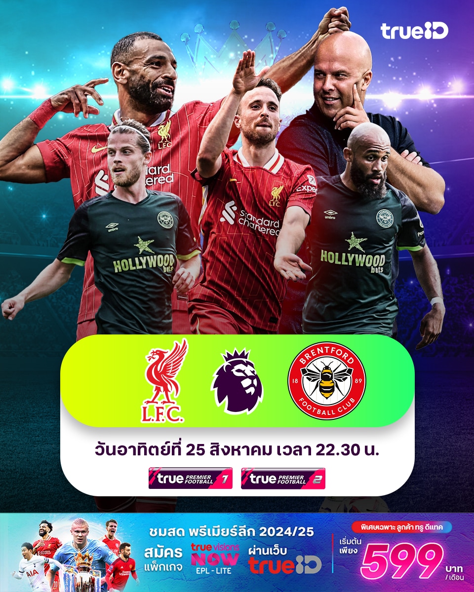 ดูบอลสด พรีเมียร์ลีก 2024/25 ลิเวอร์พูล VS เบรนท์ฟอร์ด ลิงก์ดูออนไลน์