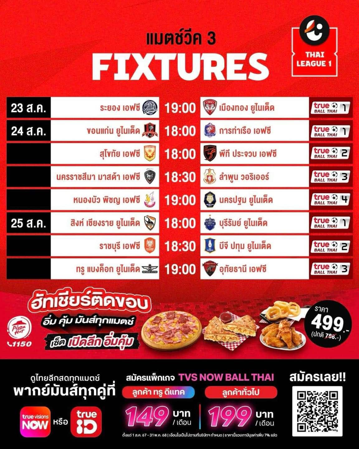 ตารางแข่งขัน รีโว่ 2024/25 ไทยลีก โปรแกรมฟุตบอลไทยลีก สัปดาห์ที่ 3 ทุกคู่ถ่ายทอดสดทาง AIS Play และ True Ball Thai