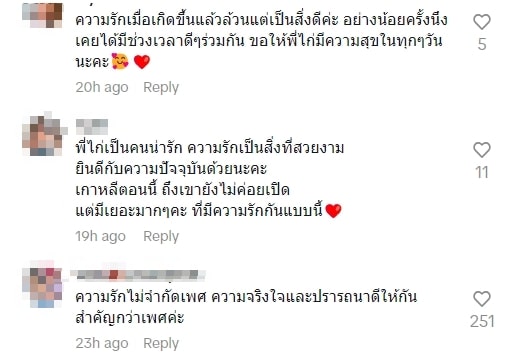 ด้านชาวเน็ตเมื่อได้เห็นภาพและข้อความของไก่ วรายุฑ ต่างก็เข้ามาแสดงความคิดเห็นชื่นชมทั้งคู่กับเรื่องราวความรักที่สวยงามมาก ๆ ในอดีตที่ผ่านมา
