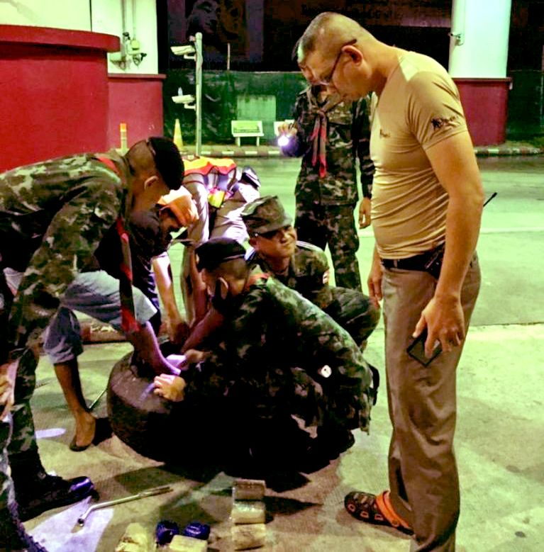 เจ้าหน้าที่ชุดจับกุมจึงได้เรียกเพื่อขอทำการตรวจค้น ผลการตรวจค้นที่ตัวนายยุทธพล หรือแจ๊ค สุขทอง พบยาบ้า จำนวน 10 เม็ด ซุกซ่อนอยู่ที่บริเวณเท้า และตรวจรถยนต์กระบะของนายยุทธพลฯ ที่บรรทุกมา พบยาบ้า อีกจำนวน 195,800 เม็ด ซุกซ่อนอยู่ในล้อยางรถที่วางอยู่ท้ายกระบะรถคันดังกล่าว