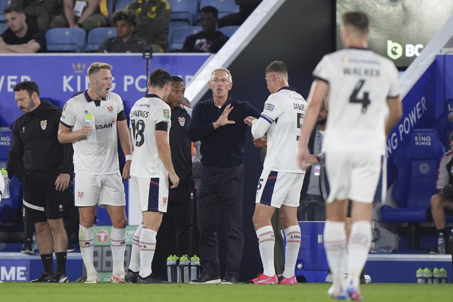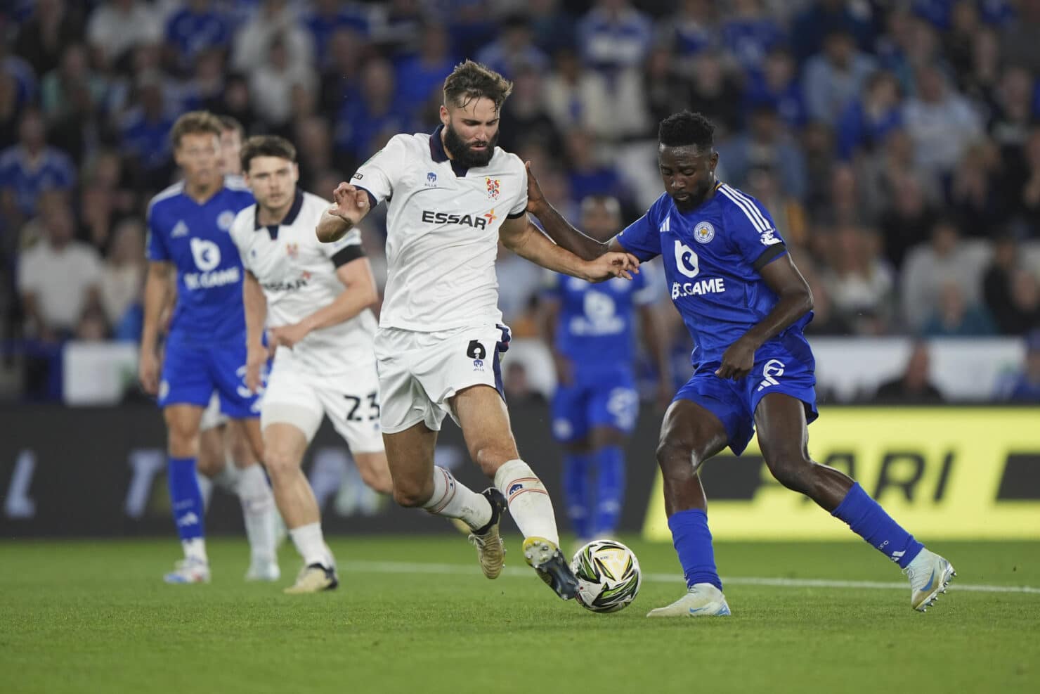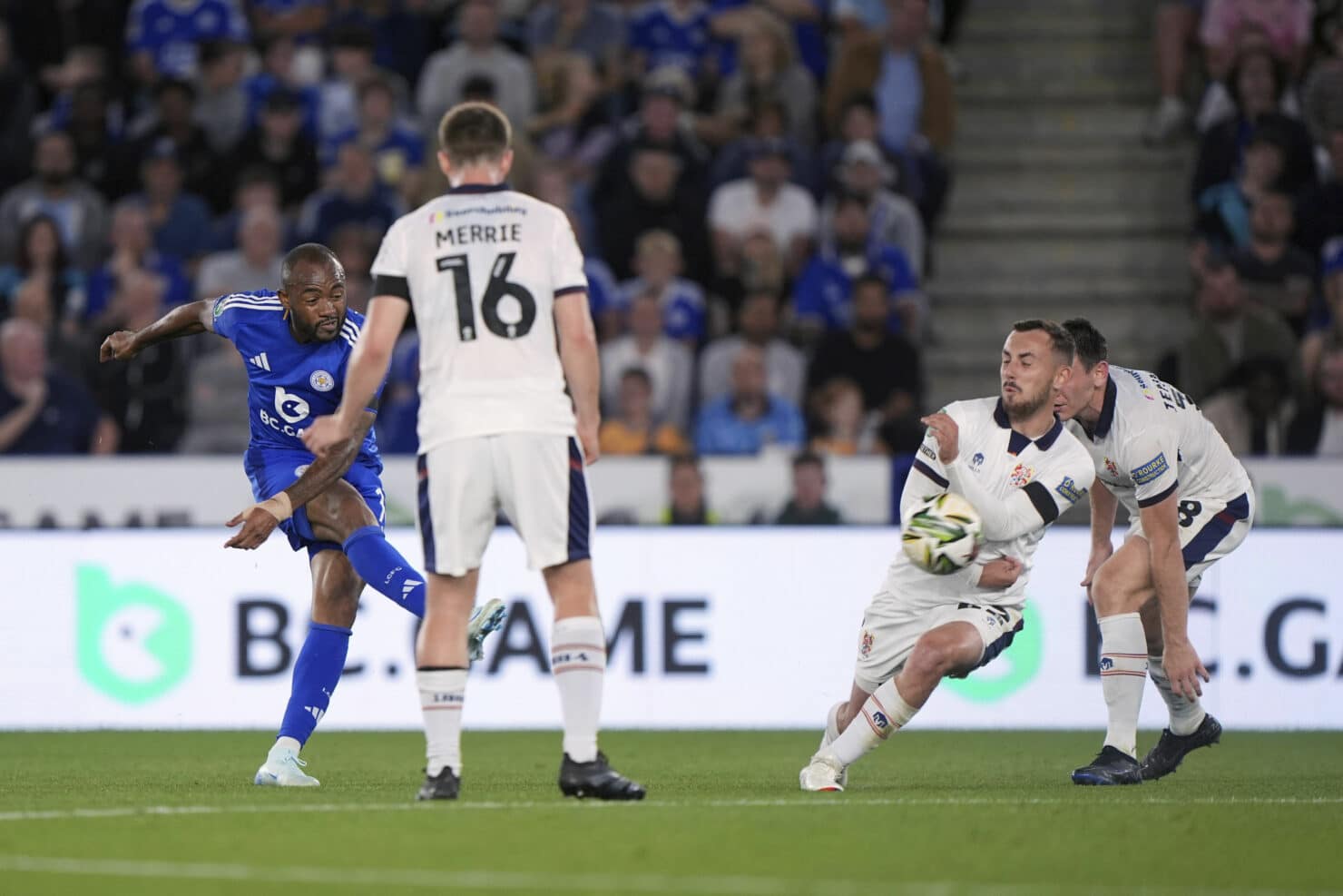 Leicester City’s Wilfred Ndidi, right, wins the ball before scoring his side’s third goal of the game during the English League Cup soccer match between Leicester City and Tranmere Rovers at the King Power Stadium, Leicester, England, Tuesday Aug 27, 2024. (Joe Giddens/PA via AP)Leicester City’s Wilfred Ndidi, center, scores their side’s third goal of the game during the English League Cup soccer match between Leicester City and Tranmere Rovers at the King Power Stadium, Leicester, England, Tuesday, Aug 27, 2024. (Joe Giddens/PA via AP)Leicester City’s Wilfred Ndidi, center, scores their side’s third goal of the game during the English League Cup soccer match between Leicester City and Tranmere Rovers at the King Power Stadium, Leicester, England, Tuesday Aug 27, 2024. (Joe Giddens/PA via AP)Leicester City’s Stephy Mavididi scores their side’s second goal of the game from the penalty spot during the English League Cup soccer match between Leicester City and Tranmere Rovers at the King Power Stadium, Leicester, England, Tuesday Aug 27, 2024. (Joe Giddens/PA via AP)Leicester City’s Jordan Ayew, left, scores their side’s first goal of the game during the English League Cup soccer match between Leicester City and Tranmere Rovers at the King Power Stadium, Leicester, England, Tuesday Aug 27, 2024. (Joe Giddens/PA via AP)Tranmere Rovers’s manager Nigel Adkins, second from right, gives instructions during the English League Cup soccer match between Leicester City and Tranmere Rovers at the King Power Stadium, Leicester, England, Tuesday Aug 27, 2024. (Joe Giddens/PA via AP)