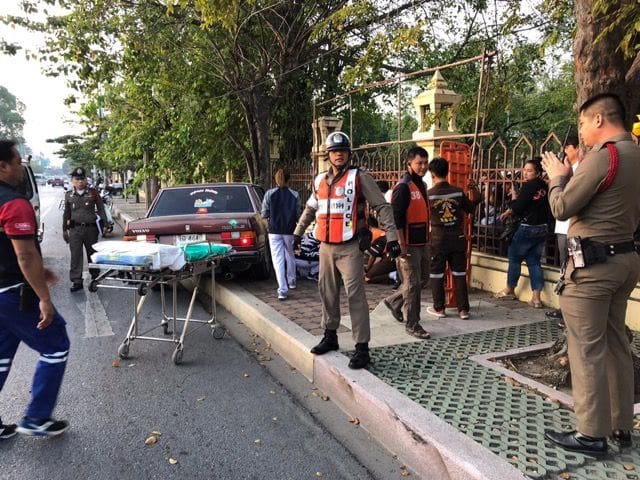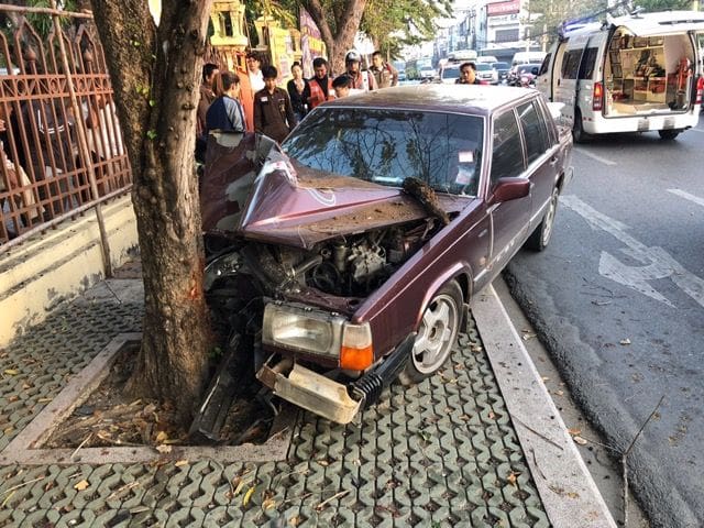 ผู้เห็นเหตุการเล่าว่า เห็นรถวอลโล่ขับมาปกติแล้วจู่ๆก็เกิดเสียหลักพุ่งชนต้นไม้ และเห็นคนเจ็บกระแทกเปิดประตูออกมาแล้วนอนแน่นิ่งไป