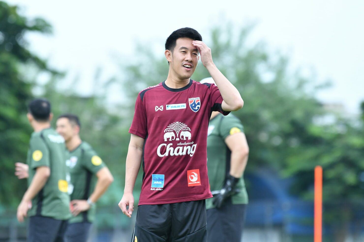 “การฝึกซ้อมที่ผ่านมา โปรแกรมเมื่อวานก็เป็นการฟื้นฟูร่างกาย ส่วนวันที่ 2 ก็เริ่มเข้าโปรแกรม ส่วนนักเตะหน้าใหม่ ส่วนหนึ่งก็ต้องโฟกัสเรื่องระบบการเล่น สิ่งที่โค้ชต้องการ เพราะมีหลายคนเข้ามาใหม่ รวมถึงคนที่เคยติดทีมชาติอยู่แล้วก็ต้องพยายามเรียนรู้ เรื่องผลการแข่งขันก็ไม่ใช่สิ่งที่เราโฟกัส ส่วนตัวที่ได้คุยกับโค้ช และการประชุมกัน โค้ชก็บอกว่าเรามีนักเตะหน้าใหม่เยอะ เราต้องโฟกัสระบบของเรา ผลการแข่งขันคืออีกเรื่อง แต่การฝึกซ้อมที่เริ่มไปจนถึงวันแข่ง เราต้องโฟกัสสิ่งที่เราซ้อมว่าเราทำอะไรบ้าง และสามารถนำไปใช้ในสนามหรือไม่ โค้ชก็อยากเห็นระบบของทีม รวมถึงนักเตะหน้าใหม่ และตัวผมก็ยังต้องพยายามปรับปรุงต่อไป แมตช์กับรัสเซีย และเวียดนาม ก็ฝากแฟนบอลชาวไทยทุกคน พวกเราจะทำเต็มที่และดีที่สุด ฝากเป็นกำลังใจให้พวกเราด้วยนะครับ”