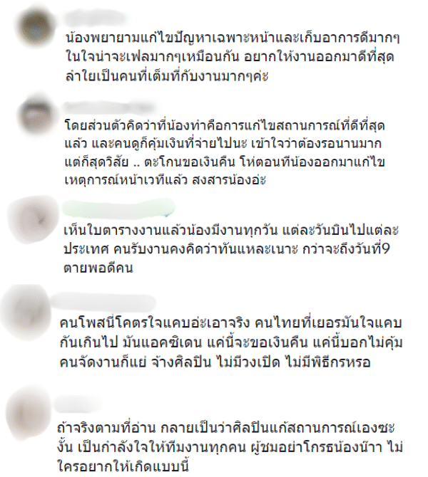 แม้เรื่องทุกอย่างจะดูคลี่คลายลง แต่กระแสในโซเชียลกลับไม่เป็นเช่นนั้น เนื่องจากแฟนคลับและแฟนเพลงหลายคน ต่างออกมาปกป้องว่าลำไยทำดีที่สุดแล้ว เป็นเหตุสุดวิสัยที่ไม่มีใครอยากให้เกิดขึ้น พร้อมตำหนิคนโพสต์ว่าใจแคบเกินไป เรื่องแค่นี้ถึงกับขอเงินคืน