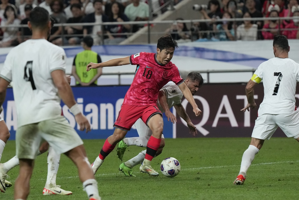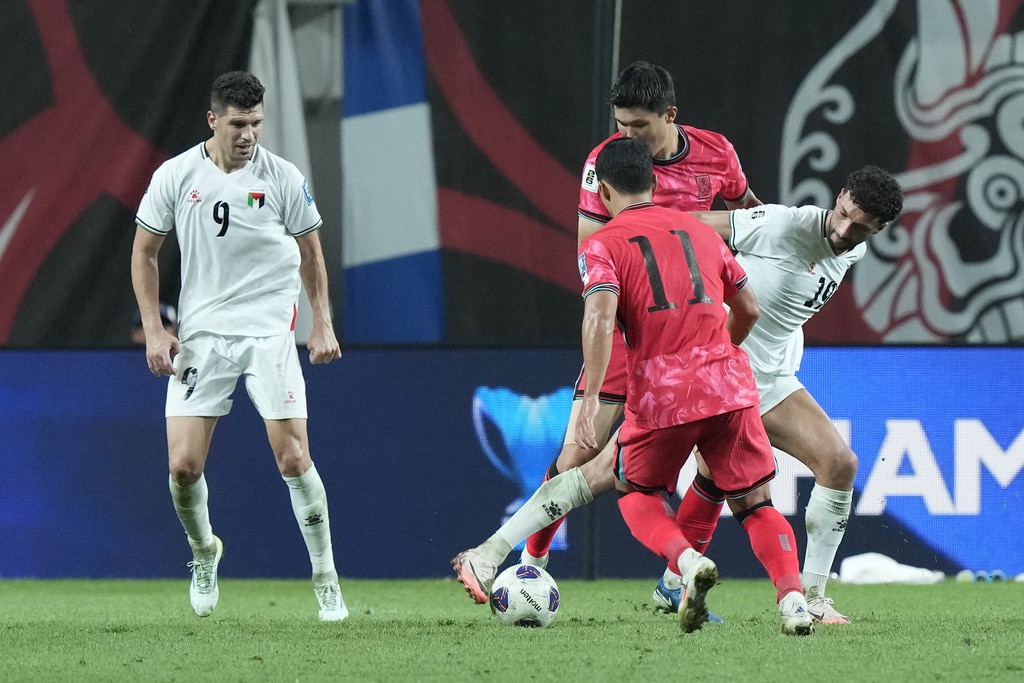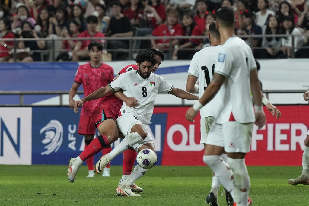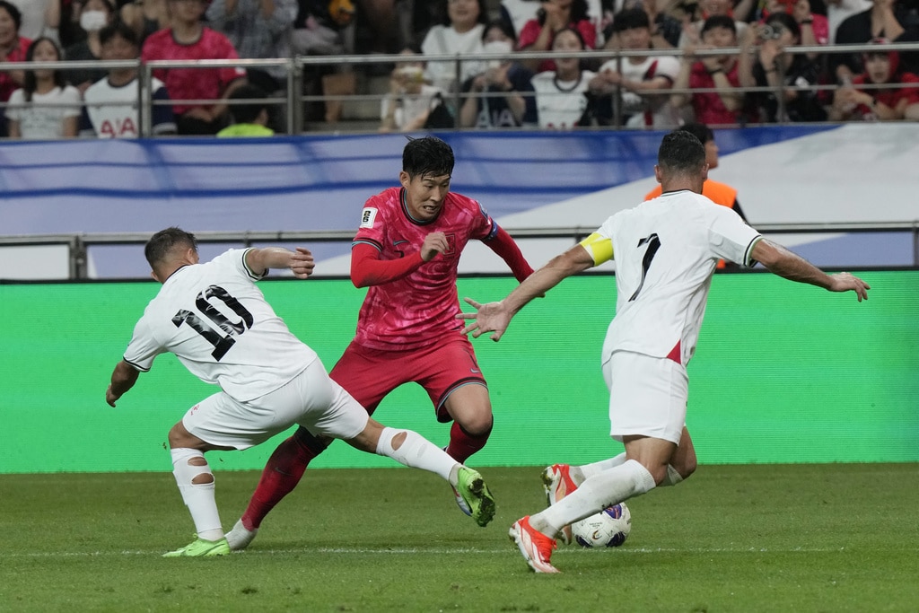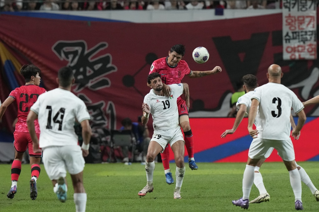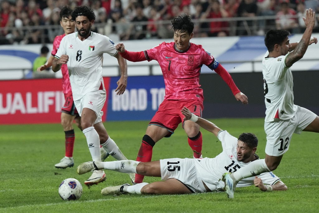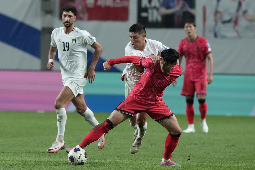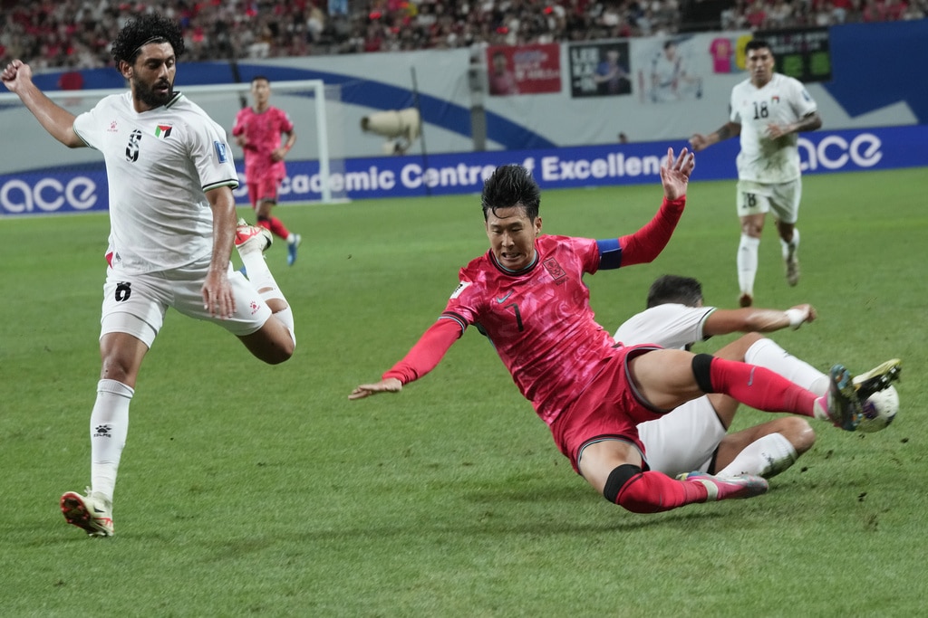 South Korea’s Son Heung-min, center right, fights for the ball with Palestine’s Jonathan Zorrilla during the Asian qualifier group B match for 2026 World Cup between South Korea and Palestine at Seoul World Cup Stadium in Seoul, South Korea, Thursday, Sept. 5, 2024. (AP Photo/Ahn Young-joon)South Korea’s Son Heung-min, center, is tackled by Palestine’s Michael Termanini during the Asian qualifier group B match for 2026 World Cup between South Korea and Palestine at Seoul World Cup Stadium in Seoul, South Korea, Thursday, Sept. 5, 2024. (AP Photo/Ahn Young-joon)South Korea’s Hang Hee-chan, center right, fights for the ball with Palestine’s Samer Jondi during the Asian qualifier group B match for 2026 World Cup between South Korea and Palestine at Seoul World Cup Stadium in Seoul, South Korea, Thursday, Sept. 5, 2024. (AP Photo/Ahn Young-joon)South Korea’s Kim Min-jae, center top, fights for the ball with Palestine’s Wessam Abouli during the Asian qualifier group B match for 2026 World Cup between South Korea and Palestine at Seoul World Cup Stadium in Seoul, South Korea, Thursday, Sept. 5, 2024. (AP Photo/Ahn Young-joon)Palestine’s Wessam Abouli, right, fights for the ball with South Korea’s Kim Min-jae during the Asian qualifier group B match for 2026 World Cup between South Korea and Palestine at Seoul World Cup Stadium in Seoul, South Korea, Thursday, Sept. 5, 2024. (AP Photo/Ahn Young-joon)Palestine’s Attaa Jaber, center, fights for the ball with South Korea’s Oh Se-hun during the Asian qualifier group B match for 2026 World Cup between South Korea and Palestine at Seoul World Cup Stadium in Seoul, South Korea, Thursday, Sept. 5, 2024. (AP Photo/Ahn Young-joon)South Korea’s Lee Kang-in, center left, fights for the ball with Palestine’s Mahmoud Abuwarda during the Asian qualifier group B match for 2026 World Cup between South Korea and Palestine at Seoul World Cup Stadium in Seoul, South Korea, Thursday, Sept. 5, 2024. (AP Photo/Ahn Young-joon)South Korea’s Son Heung-min, center, fights for the ball with Palestine’s Oday Dabbagh, left, during the Asian qualifier group B match for 2026 World Cup between South Korea and Palestine at Seoul World Cup Stadium in Seoul, South Korea, Thursday, Sept. 5, 2024. (AP Photo/Ahn Young-joon)South Korea’s Son Heung-min, center, is tackled by Palestine’s Michael Termanini during the Asian qualifier group B match for 2026 World Cup between South Korea and Palestine at Seoul World Cup Stadium in Seoul, South Korea, Thursday, Sept. 5, 2024. (AP Photo/Ahn Young-joon)