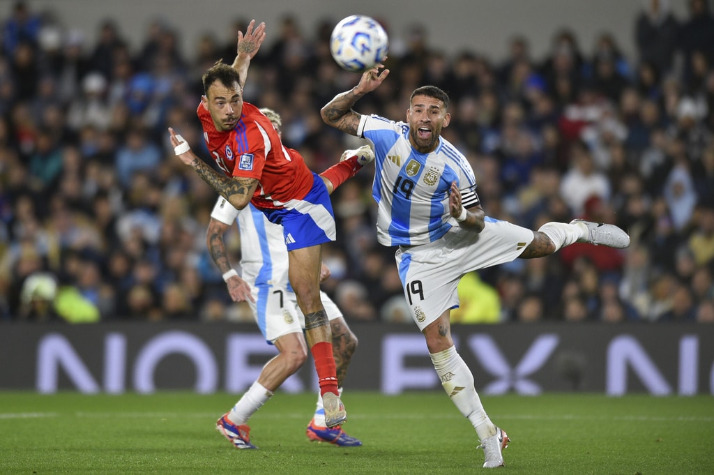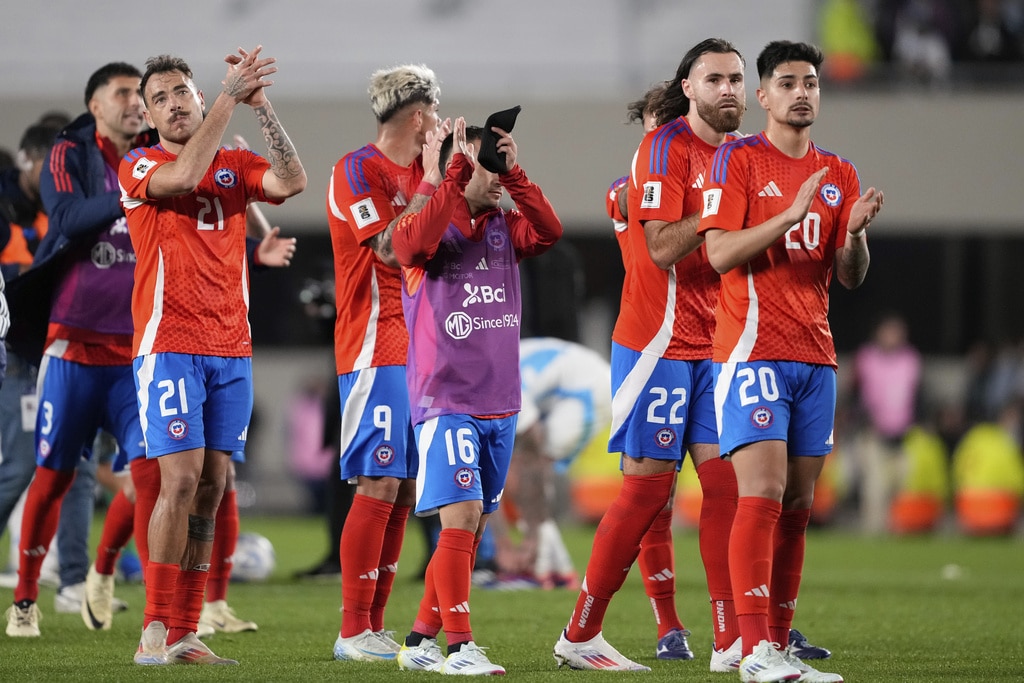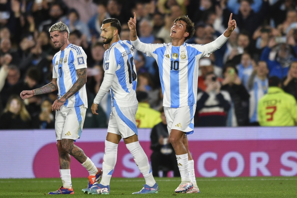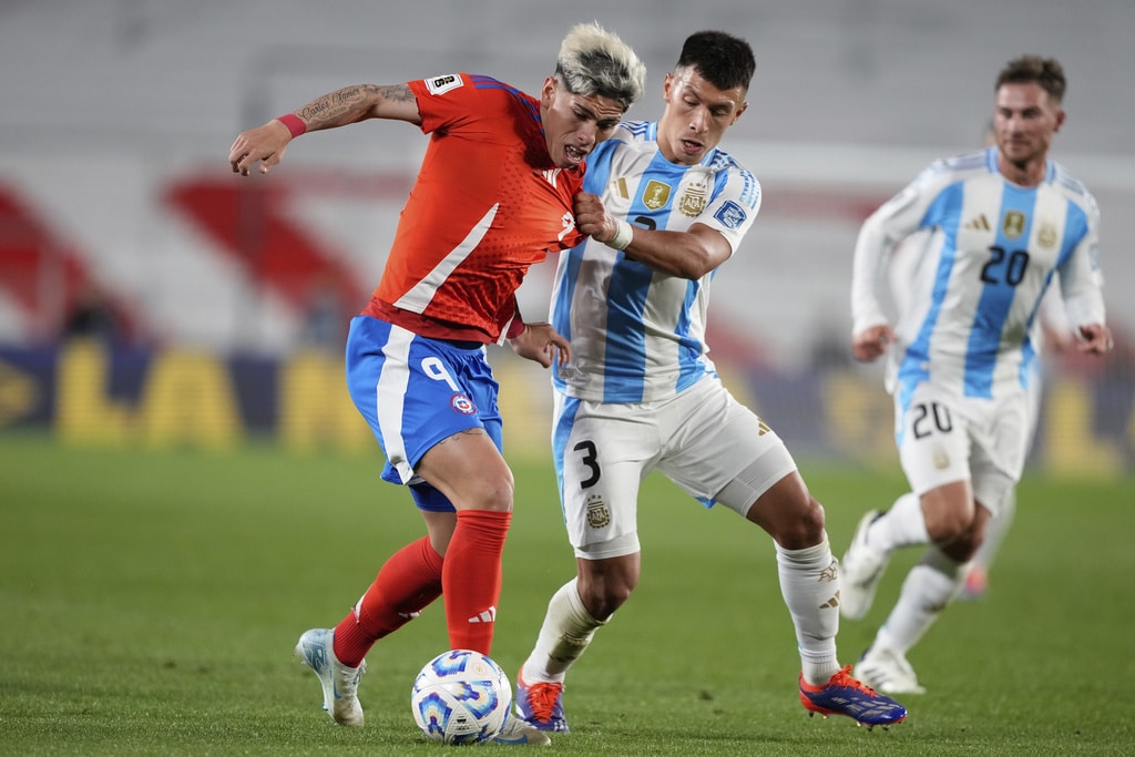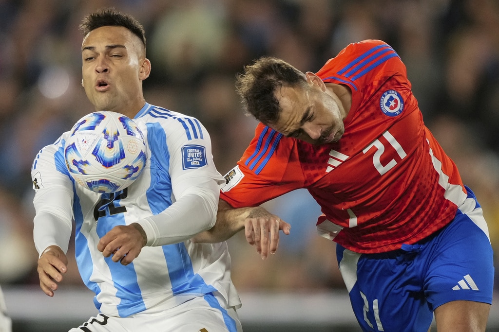 Argentina’s Lautaro Martinez, left, and Chile’s Matias Catalan vie for the ball during a qualifying soccer match for the FIFA World Cup 2026 in Buenos Aires, Argentina, Thursday, Sept. 5, 2024. (AP Photo/Natacha Pisarenko)Chile’s Eugenio Mena, left, and Argentina’s Lautaro Martinez vie for the ball during a qualifying soccer match for the FIFA World Cup 2026 in Buenos Aires, Argentina, Thursday, Sept. 5, 2024. (AP Photo/Natacha Pisarenko)Referee Jesus Valenzuela shows the yellow card to Argentina’s Rodrigo De Paul during a qualifying soccer match for the FIFA World Cup 2026 against Chile in Buenos Aires, Argentina, Thursday, Sept. 5, 2024. (AP Photo/Natacha Pisarenko)Chile’s Matias Catalan, left, and Argentina’s Nicolas Otamendi eye the ball during a qualifying soccer match for the FIFA World Cup 2026 in Buenos Aires, Argentina, Thursday, Sept. 5, 2024. (AP Photo/Gustavo Garello)Argentina’s Alexis Mac Allister (20) celebrates scoring his side’s opening goal against Chile during a qualifying soccer match for the FIFA World Cup 2026 in Buenos Aires, Argentina, Thursday, Sept. 5, 2024. (AP Photo/Gustavo Garello)Argentina’s Lisandro Martinez grabs Chile’s Carlos Palacios during a qualifying soccer match for the FIFA World Cup 2026 in Buenos Aires, Argentina, Thursday, Sept. 5, 2024. (AP Photo/Natacha Pisarenko)Argentina’s Julian Alvarez, right, celebrates scoring his side’s second goal against Chile during a qualifying soccer match for the FIFA World Cup 2026 in Buenos Aires, Argentina, Thursday, Sept. 5, 2024. (AP Photo/Gustavo Garello)Teammates surround Argentina’s Paulo Dybala (10) after he scored his side’s third goal against Chile during a qualifying soccer match for the FIFA World Cup 2026 in Buenos Aires, Argentina, Thursday, Sept. 5, 2024. (AP Photo/Natacha Pisarenko)Argentina’s Paulo Dybala, right, celebrates scoring his side’s third goal against Chile during a qualifying soccer match for the FIFA World Cup 2026 in Buenos Aires, Argentina, Thursday, Sept. 5, 2024. (AP Photo/Gustavo Garello)Players of Chile walk off the field after their 3-0 lost against Argentina in a qualifying soccer match for the FIFA World Cup 2026 in Buenos Aires, Argentina, Thursday, Sept. 5, 2024. (AP Photo/Natacha Pisarenko)