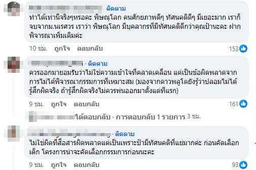 ด้านชาวเน็ตก็ได้เข้ามาแสดงความคิดเห็นกันอย่างมากมายทั้งใต้โพสต์ของคุณครูผู้ดูแล รวมถึงโพสต์ของเพจทูบีนัมเบอร์วัน พิษณุโลก บางคอมเมนต์เรียกร้องให้มีการขอโทษออกสื่อที่ไม่ใช่การอัดคลิป และต้องมีการเรียกความเชื่อมั่นให้โครงการนี้กลับมา เพราะสิ่งที่กรรมการคนนี้อ้างว่าสื่อสารคลาดเคลื่อนนั้นมันกระทบทั้งความรู้สึกของน้องนักเรียน รวมถึงกลุ่มเพศทางเลือกทั้งหมดด้วย บางคนก็อยากให้ทางโครงการยุติบทบาทของกรรมการรายนี้ออก เพราะทัศนคติที่ไม่เหมาะสม