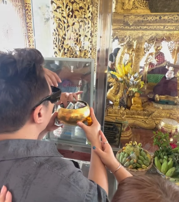 - ถวายผ้าห่มขนาด 09 นิ้ว ให้กับแม่ยักษ์ ที่เจดีย์ชเวดากอง
