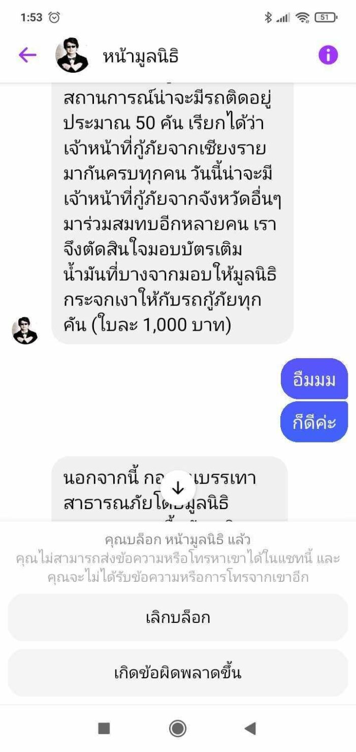 ปรากฏว่าต่อมา มีเฟซมิจ ใช้ภาพ บก ลายจุดทักมาหาเขาเลยว่ะมาขอเงินบริจาค พ่อแม่พี่น้องโปรดระวังครับผม”