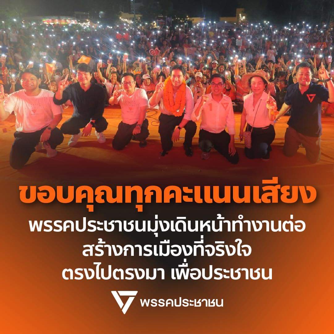 ผมอยากกล่าวคำขอบคุณให้กำลังใจคุณโฟล์ค รวมถึงทีมผช.หาเสียง เพื่อนสส. ทีมงานหลังบ้าน รวมถึงผู้สนับสนุนพรรคทุกคน ทุกคนคือความภาคภูมิใจของผม และพ่อแม่พี่น้องประชาชน ผู้ทรงอำนาจสูงสุดครับ