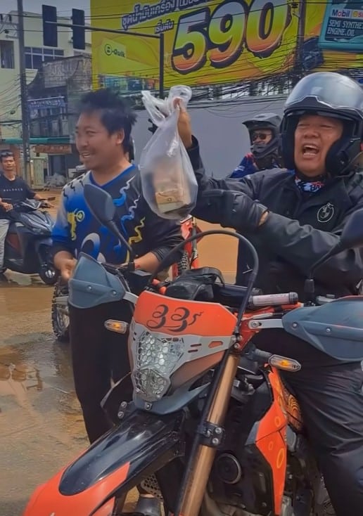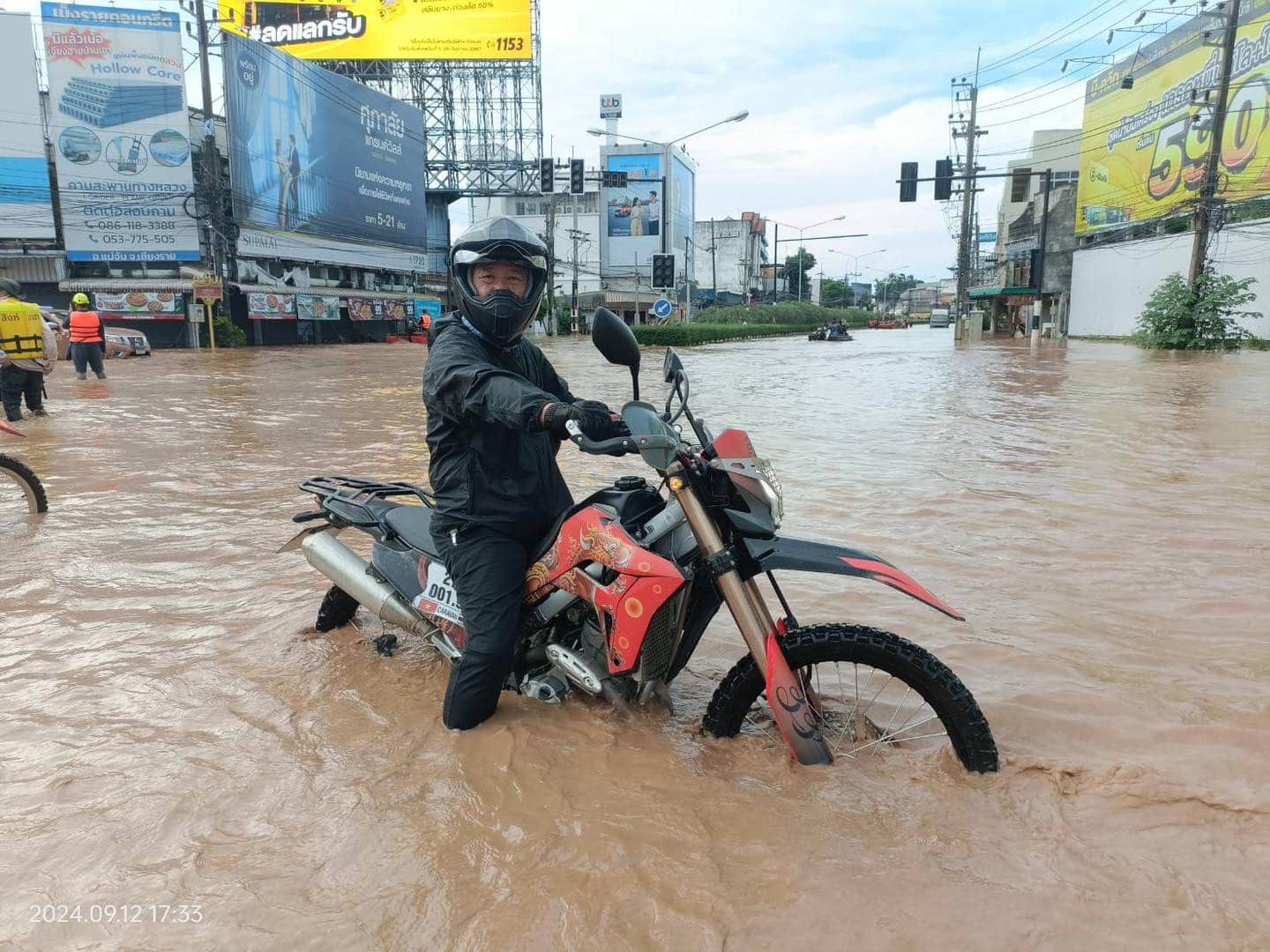 ก็คนมันรวย “อ.เฉลิมชัย” ซิ่งสองล้อคู่ใจ ตระเวนแจกเงิน ช่วยน้ำท่วมเชียงราย