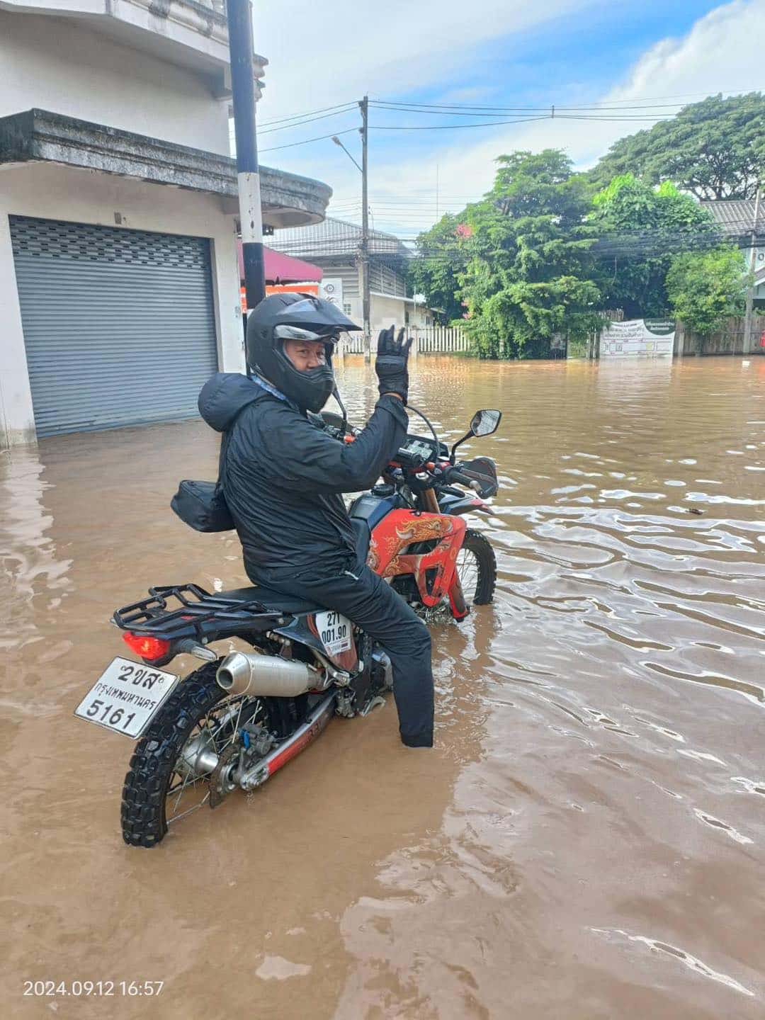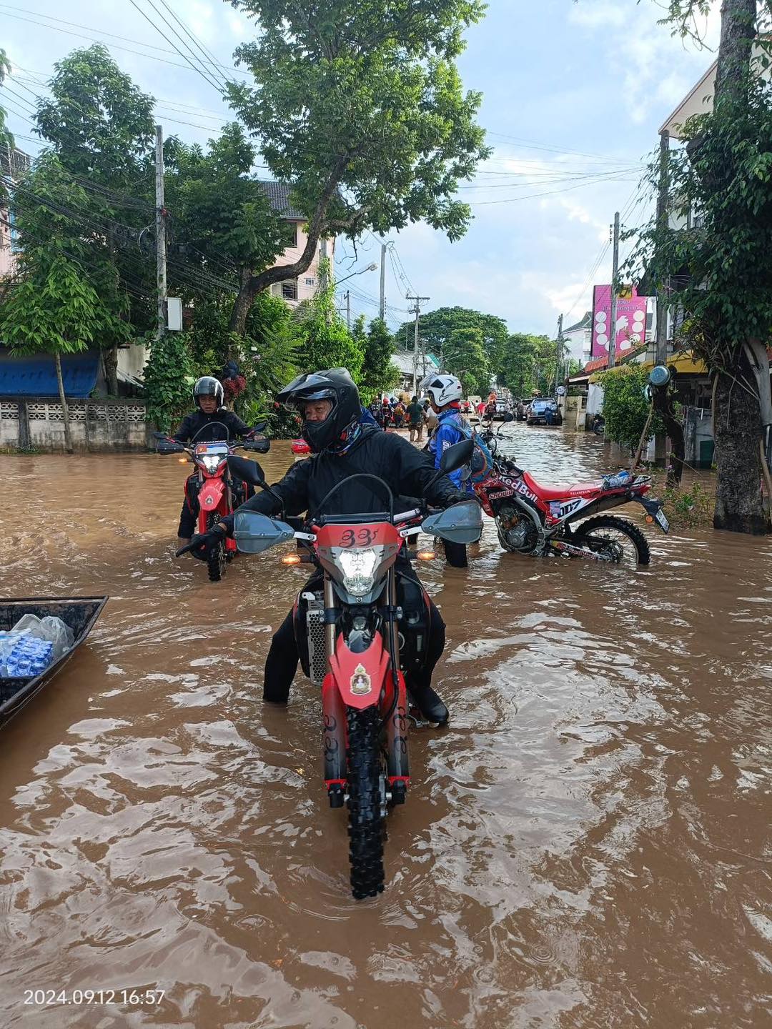 ก็คนมันรวย “อ.เฉลิมชัย” ซิ่งสองล้อคู่ใจ ตระเวนแจกเงิน ช่วยน้ำท่วมเชียงราย