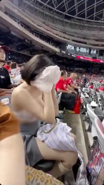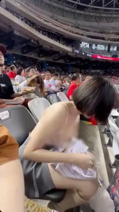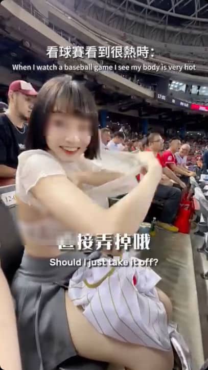 แฟนบอลสาวเปลี่ยนเสื้อกลางสนามกีฬา ไทเปแกรนด์โดม อวดความเซ็กซี่แบบเต็มๆ