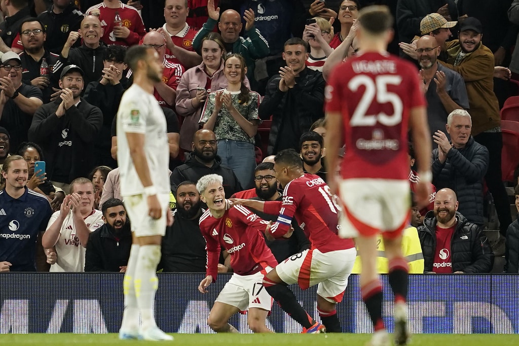 Manchester United’s Antony, left, and Barnsley’s Corey O’Keeffe battle for the ball during the English League Cup soccer match between Manchester United and Barnsley at Old Trafford, Manchester, England, Tuesday, Sept. 17, 2024. (AP Photo/Dave Thompson)Manchester United’s Marcus Rashford celebrates with Manchester United’s Alejandro Garnacho, left, after scoring the fifth goal during the English League Cup soccer match between Manchester United and Barnsley at Old Trafford, Manchester, England, Tuesday, Sept. 17, 2024. (AP Photo/Dave Thompson)Manchester United’s Alejandro Garnacho is celebrated by Manchester United’s Casemiro after scoring his side’s fourth goal during the English League Cup soccer match between Manchester United and Barnsley at Old Trafford, Manchester, England, Tuesday, Sept. 17, 2024. (AP Photo/Dave Thompson)Manchester United’s Alejandro Garnacho celebrates after scoring his side’s fourth goal during the English League Cup soccer match between Manchester United and Barnsley at Old Trafford, Manchester, England, Tuesday, Sept. 17, 2024. (AP Photo/Dave Thompson)Manchester United’s Alejandro Garnacho celebrates after scoring his side’s third goal during the English League Cup soccer match between Manchester United and Barnsley at Old Trafford, Manchester, England, Tuesday, Sept. 17, 2024. (AP Photo/Dave Thompson)Manchester United’s Antony, left, celebrates scoring with Alejandro Garnacho during the English League Cup soccer match between Manchester United and Barnsley at Old Trafford, Manchester, England, Tuesday, Sept. 17, 2024. (Mike Egerton/PA via AP)Manchester United’s Marcus Rashford is celebrated by teammates after he scored the opening goal during the English League Cup soccer match between Manchester United and Barnsley at Old Trafford, Manchester, England, Tuesday, Sept. 17, 2024. (AP Photo/Dave Thompson)Manchester United’s Manuel Ugarte runs for the ball during the English League Cup soccer match between Manchester United and Barnsley at Old Trafford, Manchester, England, Tuesday, Sept. 17, 2024. (AP Photo/Dave Thompson)Manchester United’s Toby Collyer, left, and Barnsley’s Adam Phillips battle for the ball during the English League Cup soccer match between Manchester United and Barnsley at Old Trafford, Manchester, England, Tuesday, Sept. 17, 2024. (AP Photo/Dave Thompson)