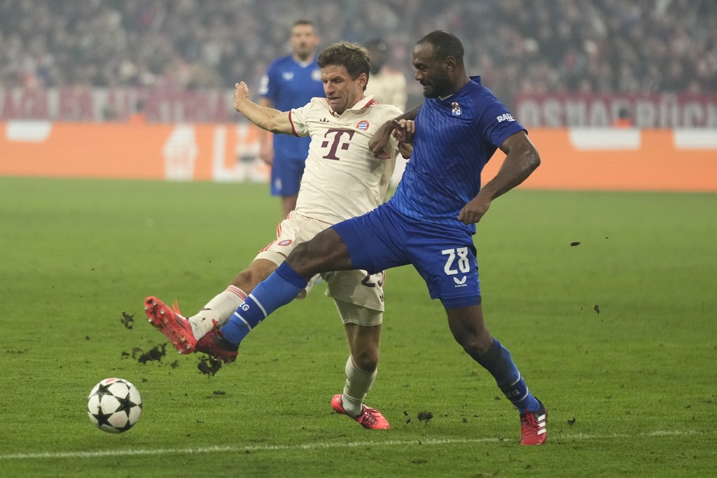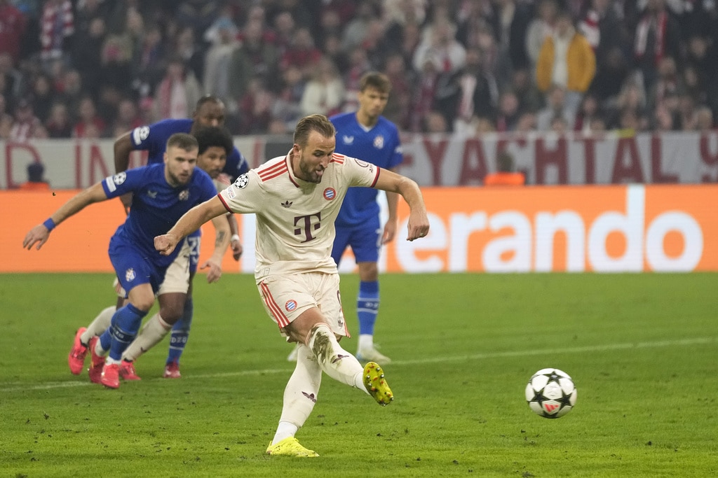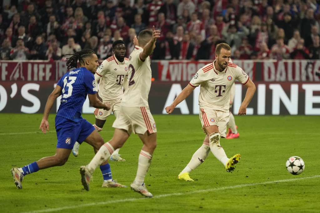 Bayern’s Harry Kane, right, celebrates after scoring his sides 5th goal during the Champions League opening phase soccer match between Bayern Munich and GNK Dinamo at the Allianz Arena in Munich, Germany Tuesday, Sept. 17, 2024. (AP Photo/Matthias Schrader)Bayern’s head coach Vincent Kompany watches his team play from the sidelines during the Champions League opening phase soccer match between Bayern Munich and GNK Dinamo at the Allianz Arena in Munich, Germany Tuesday, Sept. 17, 2024. (AP Photo/Matthias Schrader)Bayern’s Harry Kane scores his sides 7th goal and his 4th of the game from the penalty spot during the Champions League opening phase soccer match between Bayern Munich and GNK Dinamo at the Allianz Arena in Munich, Germany Tuesday, Sept. 17, 2024. (AP Photo/Matthias Schrader)Bayern’s Harry Kane scores his sides 5th goal during the Champions League opening phase soccer match between Bayern Munich and GNK Dinamo at the Allianz Arena in Munich, Germany Tuesday, Sept. 17, 2024. (AP Photo/Matthias Schrader)Bayern’s Leroy Sane, second right celebrates with teammates after scoring his sides 8th goal, during the Champions League opening phase soccer match between Bayern Munich and GNK Dinamo at the Allianz Arena in Munich, Germany Tuesday, Sept. 17, 2024. (AP Photo/Matthias Schrader)Bayern’s Thomas Mueller, left, vies for the ball with Dinamo’s Kevin Theophile-Catherine during the Champions League opening phase soccer match between Bayern Munich and GNK Dinamo at the Allianz Arena in Munich, Germany Tuesday, Sept. 17, 2024. (AP Photo/Matthias Schrader)Referee Marco Guida shows a yellow card to Dinamo’s Stefan Ristovski for a foul on Bayern’s Alphonso Davies during the Champions League opening phase soccer match between Bayern Munich and GNK Dinamo at the Allianz Arena in Munich, Germany Tuesday, Sept. 17, 2024. (AP Photo/Matthias Schrader)Bayern’s Harry Kane scores his sides 7th goal and his 4th of the game from the penalty spot during the Champions League opening phase soccer match between Bayern Munich and GNK Dinamo at the Allianz Arena in Munich, Germany Tuesday, Sept. 17, 2024. (AP Photo/Matthias Schrader)Bayern’s Michael Olise, right, is congratulated by teammate Bayern’s Serge Gnabry after scoring his sides 5th goal during the Champions League opening phase soccer match between Bayern Munich and GNK Dinamo at the Allianz Arena in Munich, Germany Tuesday, Sept. 17, 2024. (AP Photo/Matthias Schrader)Bayern’s Jamal Musiala, (42), is tackled by Dinamo’s Bruno Petkovic during the Champions League opening phase soccer match between Bayern Munich and GNK Dinamo at the Allianz Arena in Munich, Germany Tuesday, Sept. 17, 2024. (AP Photo/Matthias Schrader)Dinamo’s Takuya Ogiwara, right celebrates after scoring his sides second gaol during the Champions League opening phase soccer match between Bayern Munich and GNK Dinamo at the Allianz Arena in Munich, Germany Tuesday, Sept. 17, 2024. (AP Photo/Matthias Schrader)
