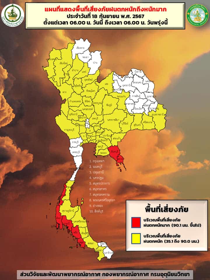 - เตรียมรับมือ อุตุฯ ประกาศฉบับที่ 1 ฝนถล่มทั่วไทย 13-17 ก.ย. อันตรายน้ำท่วมฉับพลัน