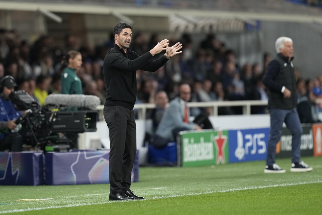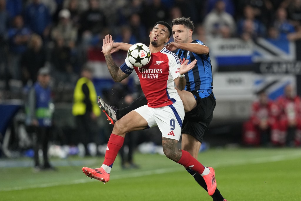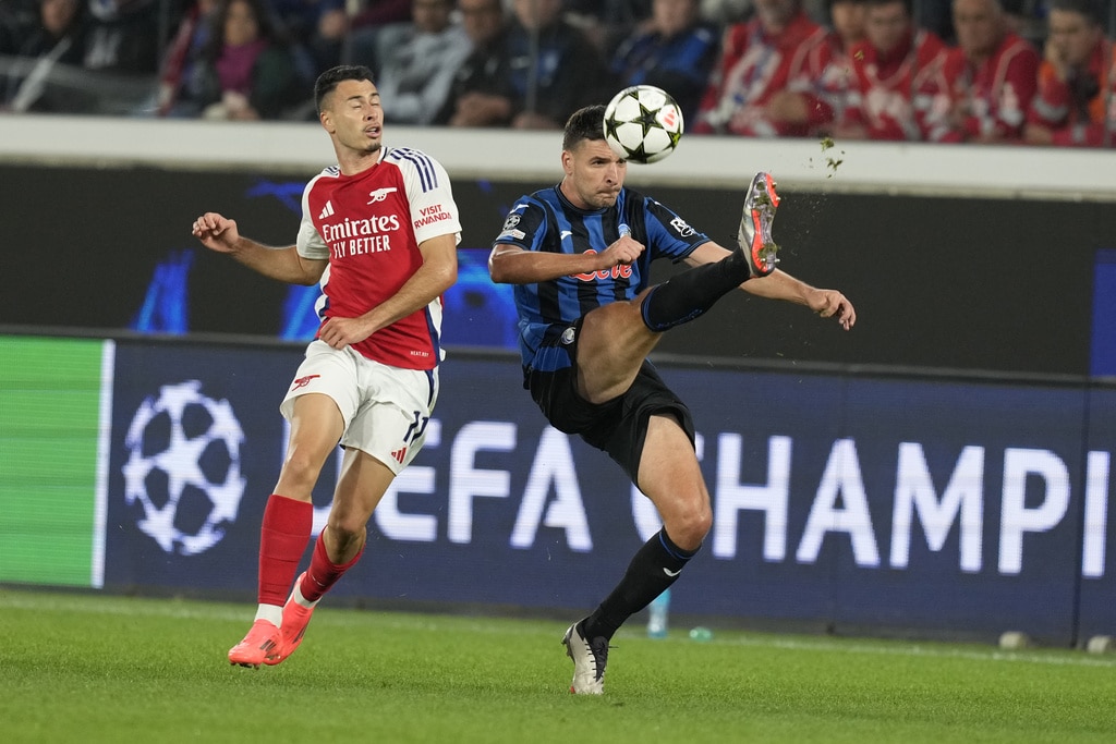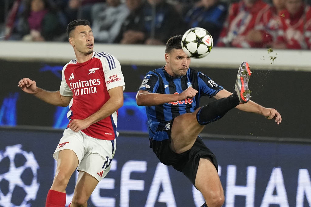 Arsenal’s William Saliba, left, and Atalanta’s Ademola Lookman challenge for the ball during the Champions League opening phase soccer match between Atalanta and Arsenal at the Bergamo’s stadium in Bergamo, Italy, Thursday, Sept. 19, 2024. (AP Photo/Antonio Calanni)Arsenal’s goalkeeper David Raya reacts after saving on Atalanta’s Mateo Retegui penalty kick during the Champions League opening phase soccer match between Atalanta and Arsenal at the Bergamo’s stadium in Bergamo, Italy, Thursday, Sept. 19, 2024. (AP Photo/Antonio Calanni)Arsenal’s Raheem Sterling, centre left, and Atalanta’s Juan Cuadrado challenge for the ball during the Champions League opening phase soccer match between Atalanta and Arsenal at the Bergamo’s stadium in Bergamo, Italy, Thursday, Sept. 19, 2024. (AP Photo/Antonio Calanni)Arsenal’s Gabriel Jesus, left, and Atalanta’s Isak Hien, right, challenge for the ball during the Champions League opening phase soccer match between Atalanta and Arsenal at the Bergamo’s stadium in Bergamo, Italy, Thursday, Sept. 19, 2024. (AP Photo/Antonio Calanni)Arsenal’s Gabriel Martinelli, left, and Atalanta’s Berat Djimsiti challenge for the ball during the Champions League opening phase soccer match between Atalanta and Arsenal at the Bergamo’s stadium in Bergamo, Italy, Thursday, Sept. 19, 2024. (AP Photo/Antonio Calanni)Arsenal’s Gabriel Martinelli, left, and Atalanta’s Berat Djimsiti challenge for the ball during the Champions League opening phase soccer match between Atalanta and Arsenal at the Bergamo’s stadium in Bergamo, Italy, Thursday, Sept. 19, 2024. (AP Photo/Antonio Calanni)Arsenal’s Kai Havertz, right, and Atalanta’s Sead Kolasinac challenge for the ball during the Champions League opening phase soccer match between Atalanta and Arsenal at the Bergamo’s stadium in Bergamo, Italy, Thursday, Sept. 19, 2024. (AP Photo/Antonio Calanni)Arsenal’s manager Mikel Arteta gestures during the Champions League opening phase soccer match between Atalanta and Arsenal at the Bergamo’s stadium in Bergamo, Italy, Thursday, Sept. 19, 2024. (AP Photo/Antonio Calanni)Arsenal’s Gabriel Jesus, left, and Atalanta’s Berat Djimsiti challenge for the ball during the Champions League opening phase soccer match between Atalanta and Arsenal at the Bergamo’s stadium in Bergamo, Italy, Thursday, Sept. 19, 2024. (AP Photo/Antonio Calanni)
