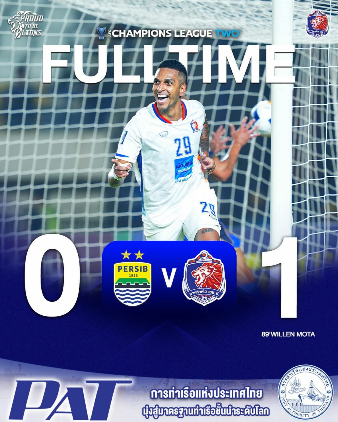 ผลการแข่งขันปรากฏว่า วิลเล่น โมต้า เป็นฮีโร่ของทีม การท่าเรือ เอฟซี หลังซัดประตูชัยน.89 พาทีมบุกเชือด เปอร์ซิบ บันดุง ถึงถิ่นแบบหวุดหวิด 1-0 ส่งผลให้ “สิงห์เจ้าท่า” คว้าสามแต้ม ในศึก ฟุตบอล เอเอฟซี แชมเปี้ยนส์ ลีก 2 รอบแบ่งกลุ่ม นัดที่ 1 สาย เอฟ