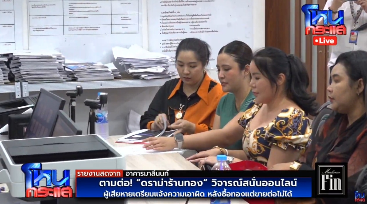 รายการโหนกระแสวันนี้ (23 ก.ย. 67) ได้มีการนำตัวแทนผู้เสียหายที่ซื้อทองคำจากร้านทองออนไลน์ชื่อดังในติ๊กต็อก ซึ่งมี แม่ตั๊ก กรกนก และป๋าเบียร์ เป็นเจ้าของและเป็นผู้ขาย แต่เมื่อนำทองที่ซื้อไปขายต่อกลับไม่มีร้านไหนรับเลย เนื่องจากไม่มีเปอร์เซ็นต์และยี่ห้อบอกที่ชัดเจน จนกลายเป็นกระดราม่าอื้อฉาวในขณะนี้