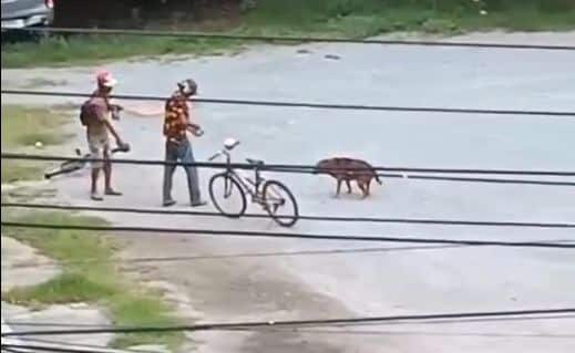 ในคลิปปรากฎภาพของชาย 2 คน ในมือถือท่อเหล็ก เชือก กำลังจับสุนัข โดยใช้เชือกผูกคอลากสุนัข โดยผู้ถ่ายคลิปเห็นกำลังดึงสุนัขจึงได้ตะโกนสอบถามว่าทำอะไร พร้อมขู่แจ้งตำรวจ