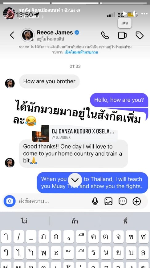 งานนี้แฟนคลับรอชม เมื่อแบ็คขวาของเชลซีอย่าง รีซ เจมส์ ทักแชทหา รถถัง จิตรเมืองนนท์ นักชกชาวไทยว่า อยากเดินทางมาเรียนมวยไทย