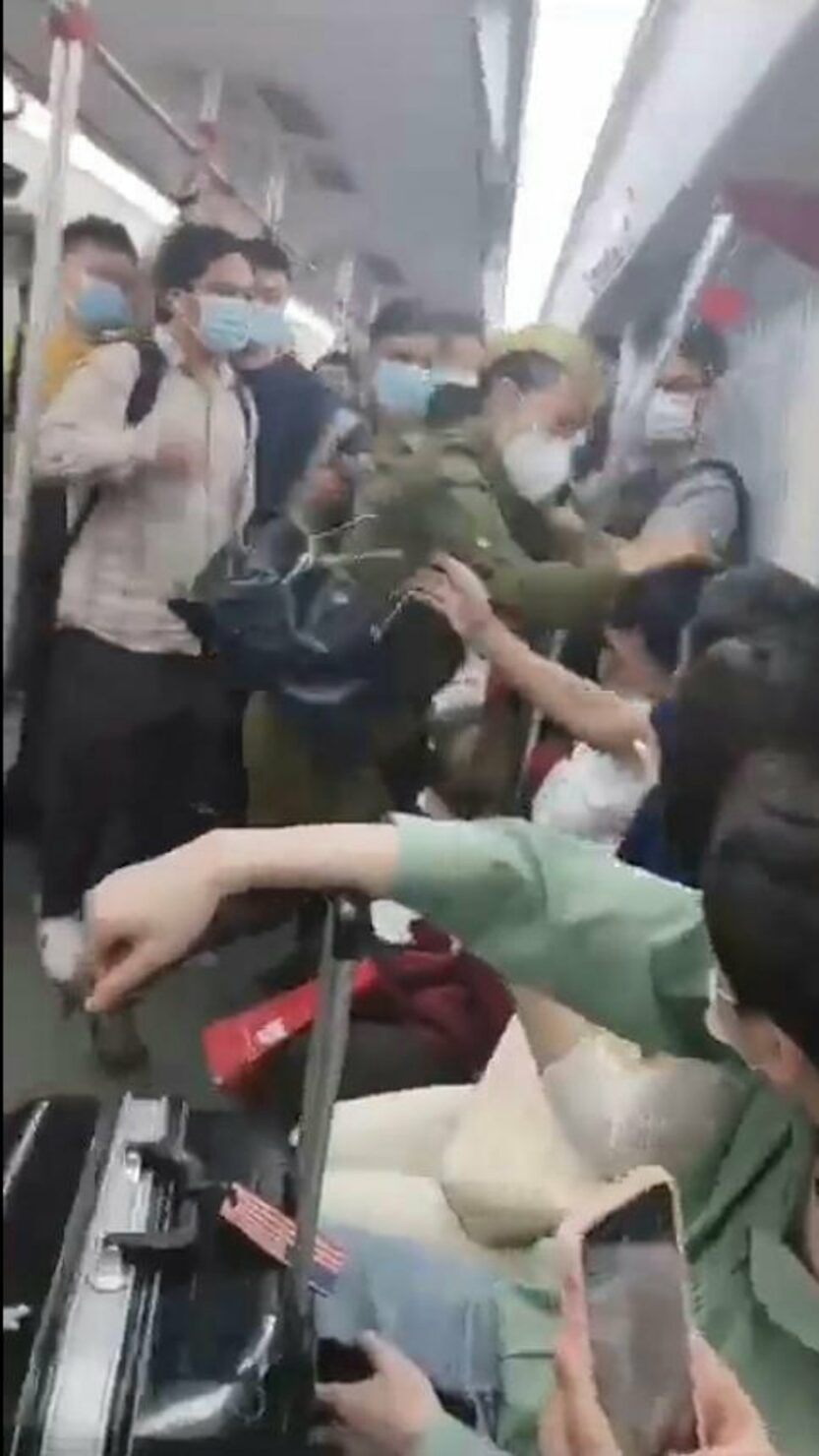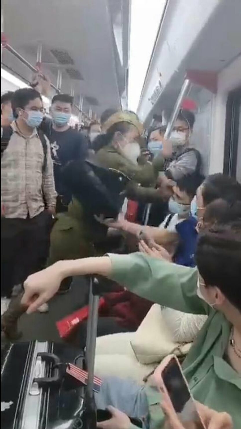หญิงอายุ 50 ปี นามสกุลหวัง มีปากเสียงกับชายวัย 31 ปี นามสกุลหลี่ แย่งที่นั่งบนรถไฟฟ้าสาย 4 ระหว่างสถานี มหาวิทยาลัยเมืองเหนือ และสถานี ซินจ่าว นางหวังเริ่มใช้ถ้อยคำรุนแรงและทำร้ายร่างกายนายหลี่ เมื่อเขาปฏิเสธที่จะลุกจากที่นั่งเพื่อให้ผู้หญิงคนอื่นนั่งแทน