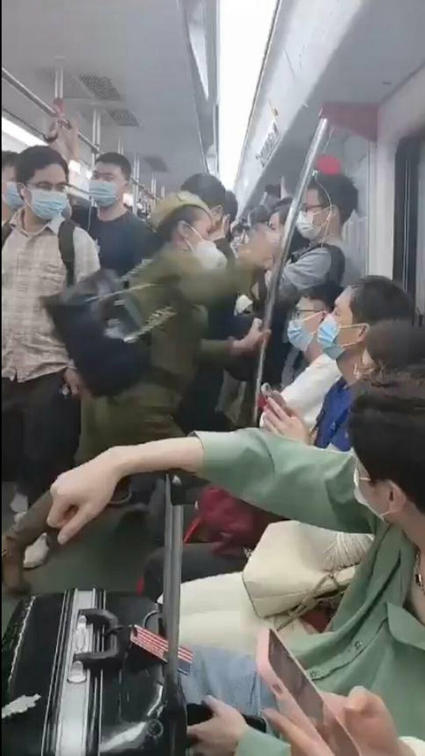 โลกโซเชียลจีนกำลังเดือด หลังมีคลิปวิดีโอเผยแพร่เหตุการณ์หญิงวัยกลางคนแต่งกายคล้ายทหาร บังคับให้ชายหนุ่มลุกจากที่นั่งบนรถไฟใต้ดินในเมืองกว่างโจว เมื่อฝ่ายชายไม่ยอม ป้าคนดังกล่าวก็ระเบิดอารมณ์ ด่าทอด้วยถ้อยคำหยาบคาย พร้อมทั้งลงมือทำร้ายร่างกาย ทั้งจิกผมและต่อยเข้าที่ศีรษะของชายหนุ่มถึง 5 ครั้งใน 3 วินาที จนผู้โดยสารชายที่นั่งข้างๆ ทนไม่ไหวต้องลุกมาห้าม