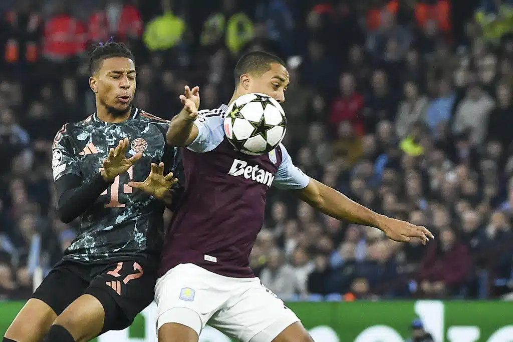 Bayern’s Michael Olise, left, duels for the ball with Aston Villa’s Youri Tielemans during the Champions League opening phase soccer match between Aston Villa and Bayern Munich, at Villa Park in Birmingham, England, Wednesday, Oct. 2, 2024. (AP Photo/Rui Vieira)Bayern’s Harry Kane applauds fans after the Champions League opening phase soccer match between Aston Villa and Bayern Munich, at Villa Park in Birmingham, England, Wednesday, Oct. 2, 2024. (Mike Egerton/PA via AP)Bayern’s Harry Kane leaves the field after the Champions League opening phase soccer match between Aston Villa and Bayern Munich, at Villa Park in Birmingham, England, Wednesday, Oct. 2, 2024. (AP Photo/Rui Vieira)Aston Villa’s Jhon Duran, left, and Lucas Digne celebrate after the Champions League opening phase soccer match between Aston Villa and Bayern Munich, at Villa Park in Birmingham, England, Wednesday, Oct. 2, 2024. (David Davies/PA via AP)Bayern’s Harry Kane, center, duels for the ball with Aston Villa’s Ross Barkley, right, during the Champions League opening phase soccer match between Aston Villa and Bayern Munich, at Villa Park in Birmingham, England, Wednesday, Oct. 2, 2024. (AP Photo/Rui Vieira)Bayern’s Harry Kane, left, reacts after missing a chance to score during the Champions League opening phase soccer match between Aston Villa and Bayern Munich, at Villa Park in Birmingham, England, Wednesday, Oct. 2, 2024. (AP Photo/Rui Vieira)Bayern’s Konrad Laimer, left, speaks with Bayern’s Joshua Kimmich during the Champions League opening phase soccer match between Aston Villa and Bayern Munich, at Villa Park in Birmingham, England, Wednesday, Oct. 2, 2024. (AP Photo/Rui Vieira)Aston Villa’s goalkeeper Emiliano Martinez, right, makes a save in front of Bayern’s Harry Kane, center, during the Champions League opening phase soccer match between Aston Villa and Bayern Munich, at Villa Park in Birmingham, England, Wednesday, Oct. 2, 2024. (AP Photo/Rui Vieira)