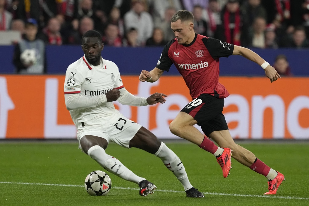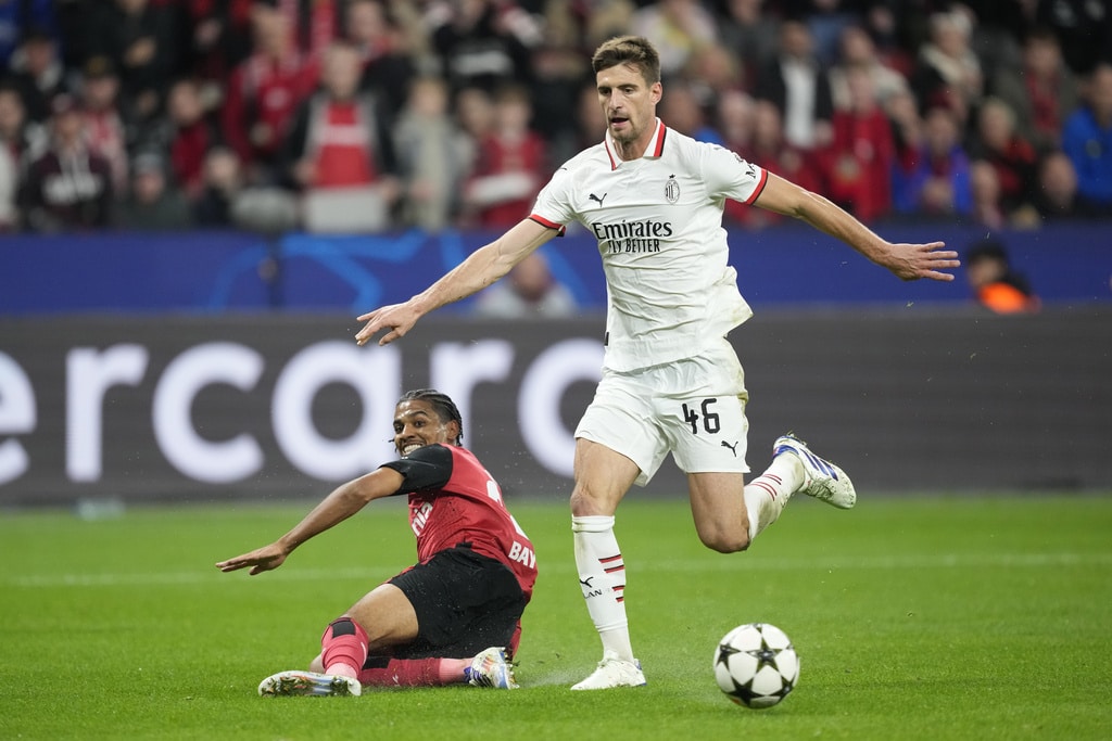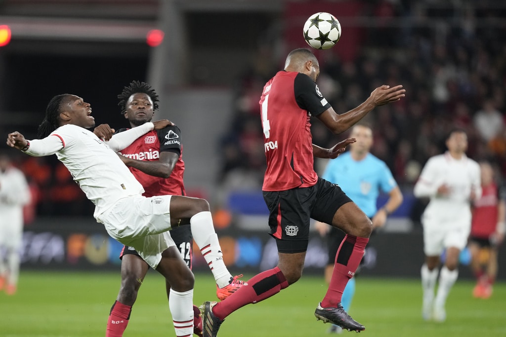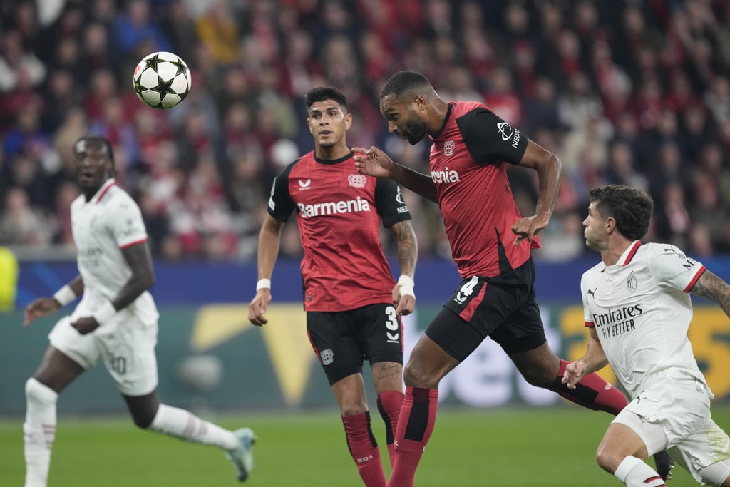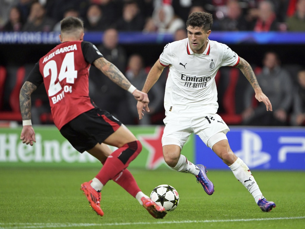 Leverkusen’s Jonathan Tah, centre, heads the ball ahead of AC Milan’s Christian Pulisic, right, during the Champions League soccer match between Bayer Leverkusen and AC Milan at the BayArena in Leverkusen, Germany, Tuesday, Oct. 1, 2024. (AP Photo/Michael Probst)Leverkusen’s Victor Boniface celebrates after scoring his side’s opening goal during the Champions League soccer match between Bayer Leverkusen and AC Milan at the BayArena in Leverkusen, Germany, Tuesday, Oct.1, 2024. (AP Photo/Michael Probst)Leverkusen’s Amine Adli, left, challenges for the ball with AC Milan’s Matteo Gabbia during the Champions League soccer match between Bayer Leverkusen and AC Milan at the BayArena in Leverkusen, Germany, Tuesday, Oct.1, 2024. (AP Photo/Michael Probst)Leverkusen’s Victor Boniface scores his side’s opening goal during the Champions League soccer match between Bayer Leverkusen and AC Milan at the BayArena in Leverkusen, Germany, Tuesday, Oct.1, 2024. (AP Photo/Michael Probst)AC Milan’s Fikayo Tomori, left, challenges for the ball with Leverkusen’s Florian Wirtz during the Champions League soccer match between Bayer Leverkusen and AC Milan at the BayArena in Leverkusen, Germany, Tuesday, Oct.1, 2024. (AP Photo/Michael Probst)AC Milan’s Tammy Abraham, centre, in action during the Champions League soccer match between Bayer Leverkusen and AC Milan at the BayArena in Leverkusen, Germany, Tuesday, Oct.1, 2024. (AP Photo/Michael Probst)AC Milan’s Tammy Abraham, centre, in action during the Champions League soccer match between Bayer Leverkusen and AC Milan at the BayArena in Leverkusen, Germany, Tuesday, Oct.1, 2024. (AP Photo/Michael Probst)Leverkusen’s Jonathan Tah, right, heads the ball ahead of AC Milan’s Tammy Abraham, left, Leverkusen’s Edmond Tapsoba during the Champions League soccer match between Bayer Leverkusen and AC Milan at the BayArena in Leverkusen, Germany, Tuesday, Oct.1, 2024. (AP Photo/Michael Probst)Milan’s Christian Pulisic, right, tries to dribble past Leverkusen’s Aleix Garcia during a Champions League soccer match between Bayer Leverkusen and AC Milan, Tuesday, Oct. 1, 2024, in Leverkusen, Germany. (Federico Gambarini/dpa via AP)