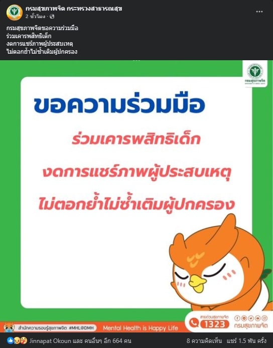 กรมสุขภาพจิต โพสขอความร่วมมืองดการแชร์ภาพเด็กผู้ประสบเหตุไฟไหม้รถบัส เพื่อเคารพสิทธิและไม่เป็นการตอกย้ำไม่ซ้ำเติมผู้ปกครอง