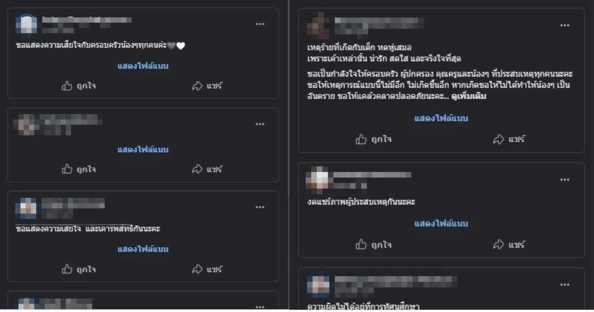 แฟนเพจ กรมสุขภาพจิต กระทรวงสาธารณสุข ได้โพสต์ข้อความว่า กรมสุขภาพจิตขอความร่วมมือร่วมเคารพสิทธิเด็ก งดการแชร์ภาพผู้ประสบเหตุ ไม่ตอกย้ำไม่ซ้ำเติมผู้ปกครอง จากรายงานว่า เหตุสลดเพลิงไหม้รถบัสโดยสารนักเรียน บนถนนวิภาวดีรังสิต ตรงข้ามพหลโยธิน 72 ซึ่งเป็นรถของโรงเรียนวัดเขาพระยาสังฆาราม จ.อุทัยธานี ขณะกำลังพานักเรียนไปทัศนศึกษา จนเกิดแฮชแท็ก #ไฟไหม้รถบัส พุ่งติดเทรนด์ สร้างความสะเทือนใจให้ผู้ที่ทราบข่าว และครอบครัวผู้เสียชีวิตและบาดเจ็บอย่างมากนั้น