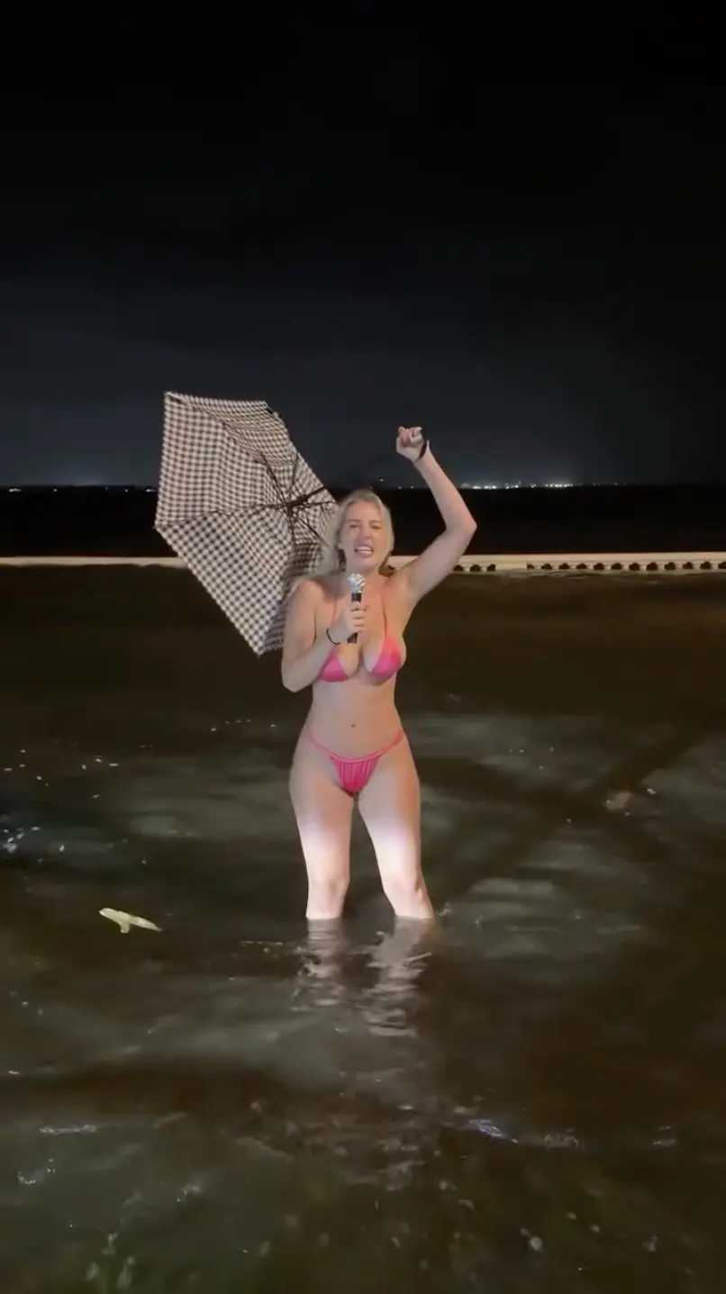 สกายเลอร์ ซิมป์สัน อินฟลูเอนเซอร์และนางแบบ OnlyFans กำลังถูกวิพากษ์วิจารณ์อย่างหนัก หลังจากที่เธอโพสต์คลิปวิดีโอเลียนแบบการรายงานสภาพอากาศ โดยสวมบิกินี่สีชมพูสดใส อวดอกตู้ม ถือร่มเดินลุยน้ำท่วมสูงระดับหน้าแข้ง ท่ามกลางพายุเฮเลนที่คร่าชีวิตผู้คนไปกว่า 160 ราย สร้างความเสียหายอย่างหนักทางตะวันออกเฉียงใต้ของสหรัฐอเมริกา