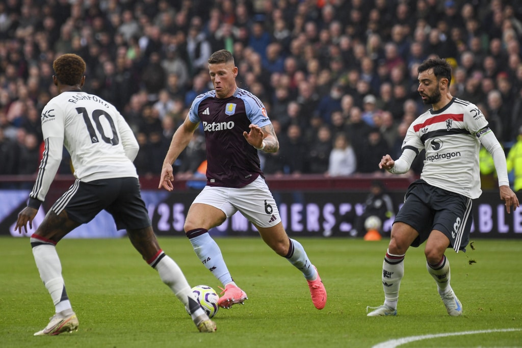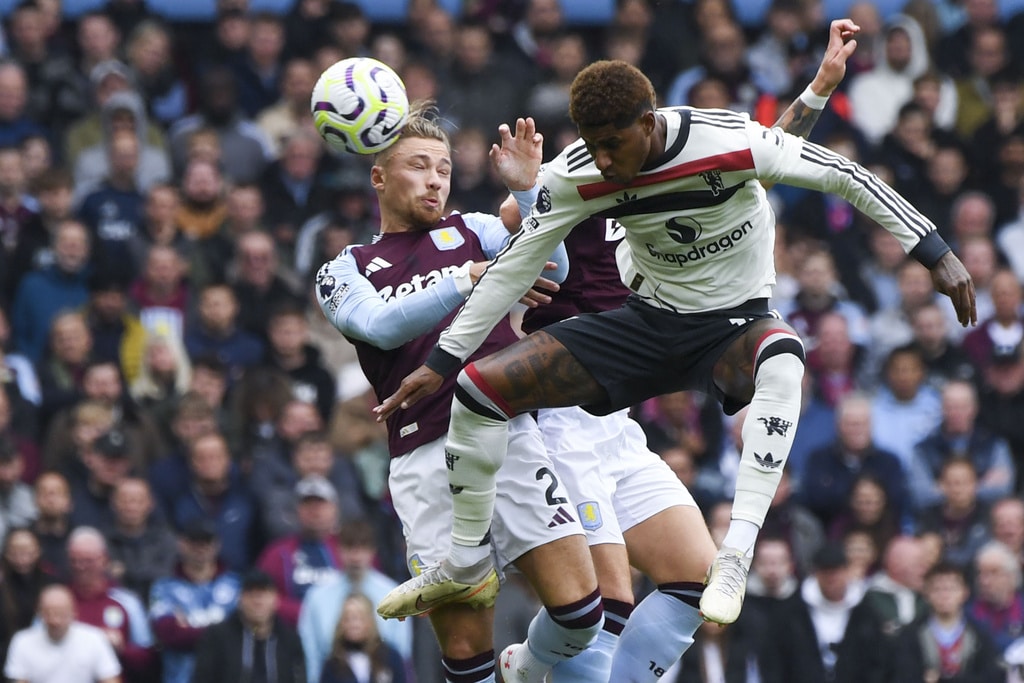 Aston Villa’s Ross Barkley, left, duels for the ball with Manchester United’s Rasmus Hojlund during the English Premier League soccer match between Aston Villa and Manchester United, at Villa Park in Birmingham, England, Sunday, Oct. 6, 2024. (AP Photo/Rui Vieira)Aston Villa’s Jhon Duran, second left, speaks with teammates during the English Premier League soccer match between Aston Villa and Manchester United, at Villa Park in Birmingham, England, Sunday, Oct. 6, 2024. (AP Photo/Rui Vieira)Aston Villa’s Ross Barkley, center, duels for the ball with Manchester United’s Marcus Rashford, left, and Manchester United’s Bruno Fernandes during the English Premier League soccer match between Aston Villa and Manchester United, at Villa Park in Birmingham, England, Sunday, Oct. 6, 2024. (AP Photo/Rui Vieira)Manchester United’s Harry Maguire reacts during the English Premier League soccer match between Aston Villa and Manchester United, at Villa Park in Birmingham, England, Sunday, Oct. 6, 2024. (AP Photo/Rui Vieira)Aston Villa’s Morgan Rogers, front left, duels for the ball with Manchester United’s Christian Eriksen during the English Premier League soccer match between Aston Villa and Manchester United, at Villa Park in Birmingham, England, Sunday, Oct. 6, 2024. (AP Photo/Rui Vieira)Manchester United’s head coach Erik ten Hag, second left, gives instructions to his players during the English Premier League soccer match between Aston Villa and Manchester United, at Villa Park in Birmingham, England, Sunday, Oct. 6, 2024. (AP Photo/Rui Vieira)Manchester United’s Marcus Rashford, right, duels for the ball with Aston Villa’s Matty Cash during the English Premier League soccer match between Aston Villa and Manchester United, at Villa Park in Birmingham, England, Sunday, Oct. 6, 2024. (AP Photo/Rui Vieira)Manchester United owner Sir Jim Ratcliffe, center, looks out from the stands prior the English Premier League soccer match between Aston Villa and Manchester United, at Villa Park in Birmingham, England, Sunday, Oct. 6, 2024. (AP Photo/Rui Vieira)
