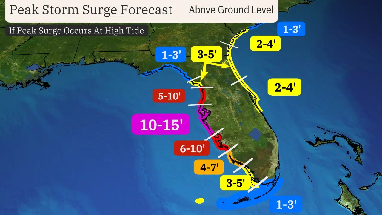 FOX Weather รายงานว่า คลื่นพายุซัดฝั่งจากเฮอริเคนมิลตัน อาจรุนแรงที่สุดในรอบเกือบ 100 ปี โดยเฉพาะในพื้นที่อ่าวแทมปา ระดับน้ำอาจสูงกว่าพื้นดินถึง 12 ฟุต
