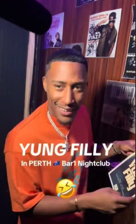 มีการโพสต์วิดีโอของแร็ปเปอร์ที่แสดงที่ Bar1 Nightclub ในเพิร์ธลงบน TikTok โดยเจ้าภาพที่จัดงาน โดยผู้ชมกำลัครึกครื้นกับบทเพลงของ Filly ซึ่งมีช็อตหนึ่งที่เจ้าตัวพูดกับกล้องว่าเขาทำผิดพลาดตอนแจกลายเซ็น แต่ในขณะนั้นเขาอยู่ในอาการมึนเมา