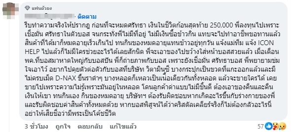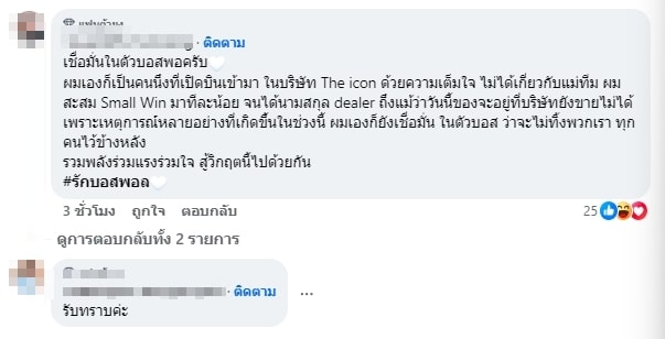 ซึ่งหลังจากโพสต์ดังกล่าวถูกเผยแพร่ออกไปไม่นาน ก็มีเหล่าลูกข่ายของบริษัท The iCon Group เข้ามาแสดงความคิดเห็นที่จะยืนหยัดเคียงข้างบอสพอล และองค์กรต่อไป แต่ก็ยังมีบางคนที่เข้ามาคอมเมนต์ต่อว่าในสิ่งที่ลงทุนไปกลับขายของไม่ได้