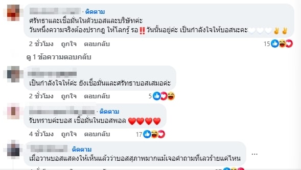 ซึ่งหลังจากโพสต์ดังกล่าวถูกเผยแพร่ออกไปไม่นาน ก็มีเหล่าลูกข่ายของบริษัท The iCon Group เข้ามาแสดงความคิดเห็นที่จะยืนหยัดเคียงข้างบอสพอล และองค์กรต่อไป แต่ก็ยังมีบางคนที่เข้ามาคอมเมนต์ต่อว่าในสิ่งที่ลงทุนไปกลับขายของไม่ได้
