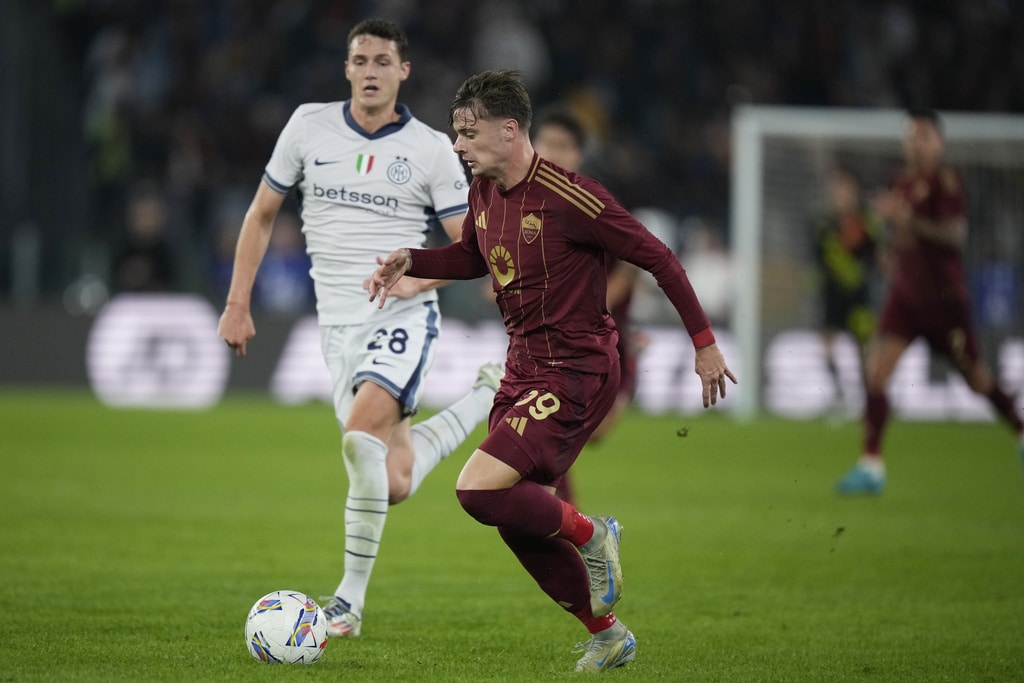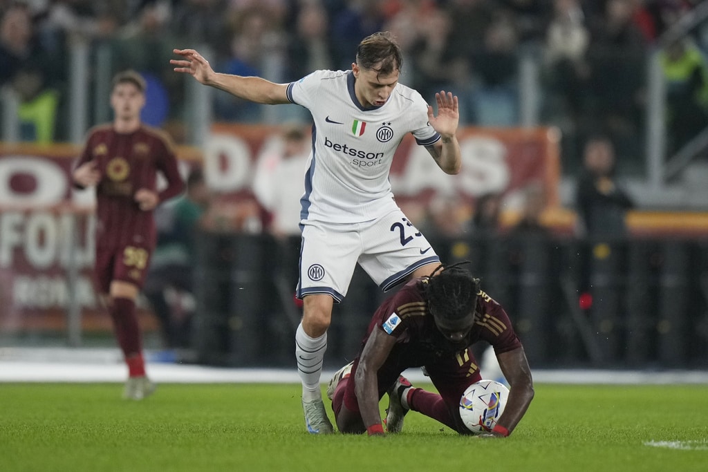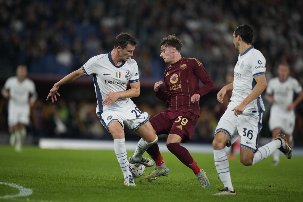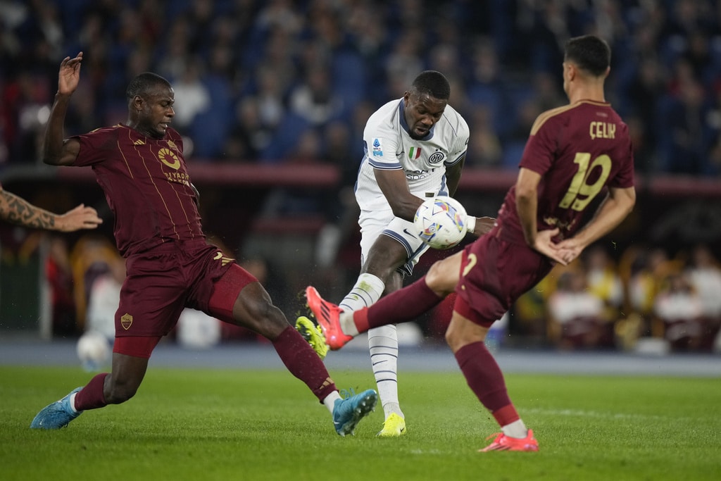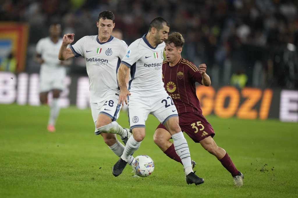 Roma’s Zeki Celik, left, and Inter Milan’s Federico Dimarco challenge for the ball during the Serie A soccer match between Roma and Inter Milan at the Stadio Olimpico in Rome, Italy, Sunday, Oct. 20, 2024. (AP Photo/Andrew Medichini)Inter Milan’s Benjamin Pavard, left, and Henrikh Mkhitaryan, centre, challenge for the ball with Roma’s Tommaso Baldanzi challenge for the ball during the Serie A soccer match between Roma and Inter Milan at the Stadio Olimpico in Rome, Italy, Sunday, Oct. 20, 2024. (AP Photo/Andrew Medichini)Inter Milan’s Matteo Darmian, right, and Benjamin Pavard, left, challenge for the ball with Roma’s Nicola Zalewski during the Serie A soccer match between Roma and Inter Milan at the Stadio Olimpico in Rome, Italy, Sunday, Oct. 20, 2024. (AP Photo/Andrew Medichini)Roma’s Gianluca Mancini, left, and Artem Dovbyk, second from right, challenge for the ball with Inter Milan’s Matteo Darmian, right, and Stefan de Vrij during the Serie A soccer match between Roma and Inter Milan at the Stadio Olimpico in Rome, Italy, Sunday, Oct. 20, 2024. (AP Photo/Andrew Medichini)Inter Milan’s Lautaro Martinez, right, celebrates after scoring the opening goal with Inter Milan’s Henrikh Mkhitaryan during the Serie A soccer match between Roma and Inter Milan at the Stadio Olimpico in Rome, Italy, Sunday, Oct. 20, 2024. (AP Photo/Andrew Medichini)Roma’s Nicola Zalewski, right, and Inter Milan’s Benjamin Pavard challenge for the ball during the Serie A soccer match between Roma and Inter Milan at the Stadio Olimpico in Rome, Italy, Sunday, Oct. 20, 2024. (AP Photo/Andrew Medichini)Roma’s Bryan Cristante, left, and Evan Ndicka, right, challenge for the ball with Inter Milan’s Marcus Thuram during the Serie A soccer match between Roma and Inter Milan at the Stadio Olimpico in Rome, Italy, Sunday, Oct. 20, 2024. (AP Photo/Andrew Medichini)Inter Milan’s Nicolo Barella, top, and Roma’s Manu Kone challenge for the ball during the Serie A soccer match between Roma and Inter Milan at the Stadio Olimpico in Rome, Italy, Sunday, Oct. 20, 2024. (AP Photo/Andrew Medichini)Roma’s Angelino, left, and Zeki Celik, right, challenge for the ball with Inter Milan’s Marcus Thuram during the Serie A soccer match between Roma and Inter Milan at the Stadio Olimpico in Rome, Italy, Sunday, Oct. 20, 2024. (AP Photo/Andrew Medichini)