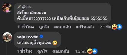 ก่อนที่ในเวลาต่อมา หนุ่ม กรรชัย จะรีบบมาคอมเมนต์สวนกลับอย่างรวดเร็วว่า “เดี๋ยวจะไปอยู่ลิเวอร์พูลแล้ว” และเมื่อชาวเน็ตเห็นแบบนั้น ก็มีสาวก ลิเวอร์พูล เข้ามาแสดงความเห็นจำนวนมาก แต่ส่วนใหญ่บอกว่า พี่หนุ่มอย่างมายุ่งกับทีมพวกผมเลย