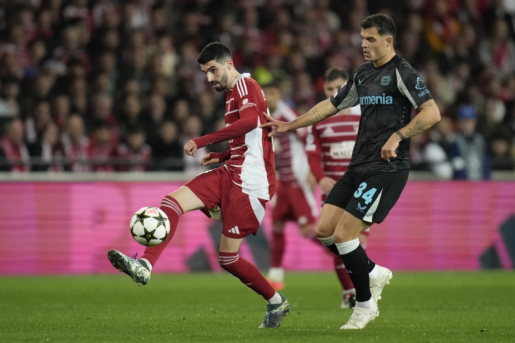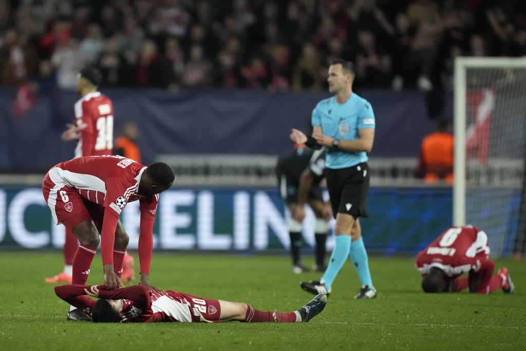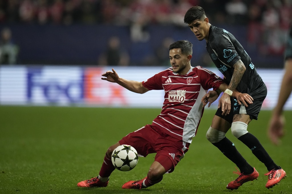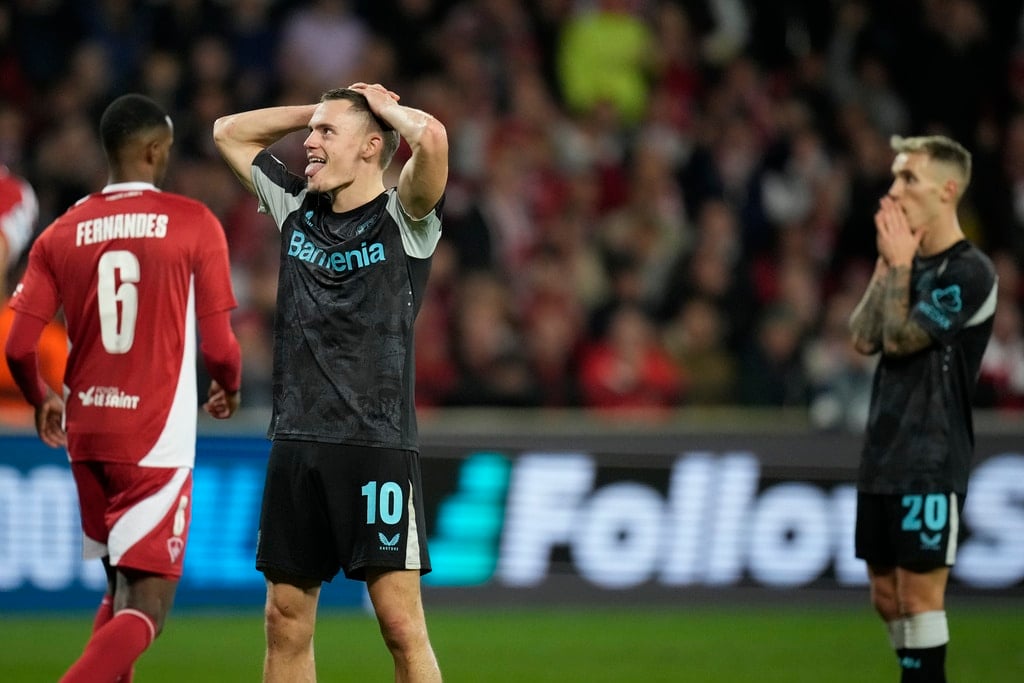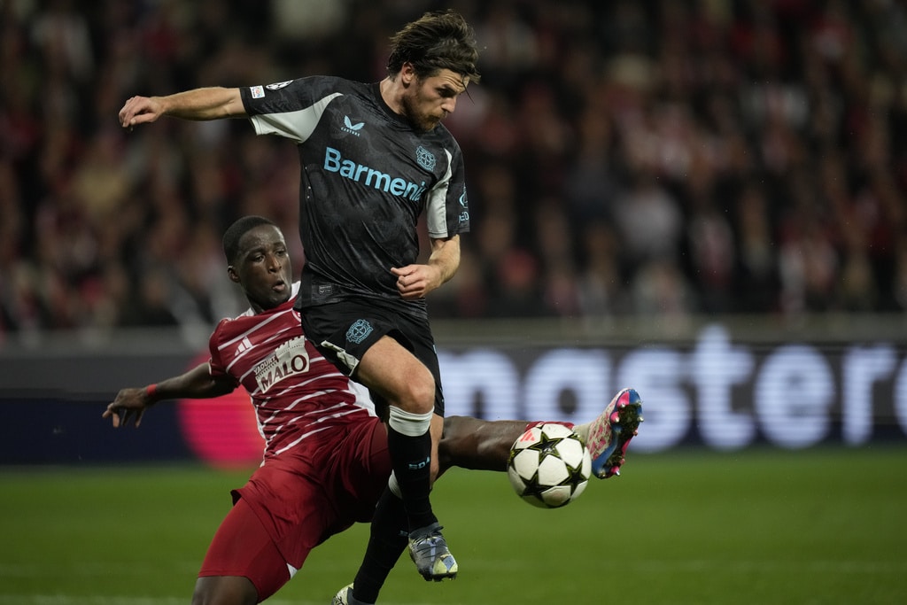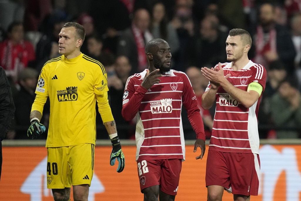 Leverkusen’s Aleix Garcia, left, and Brest’s Hugo Magnetti fight for the ball during the Champions League opening phase soccer match between Brest and Bayer Leverkusen in Guingamp, western France, Wednesday, Oct. 23, 2024. (AP Photo/Christophe Ena)Leverkusen’s Jonas Hofmann leaves the pitch after the Champions League opening phase soccer match between Brest and Bayer Leverkusen in Guingamp, western France, Wednesday, Oct. 23, 2024. (AP Photo/Christophe Ena)Brest players leave the pitch after the Champions League opening phase soccer match between Brest and Bayer Leverkusen in Guingamp, western France, Wednesday, Oct. 23, 2024. (AP Photo/Christophe Ena)Brest players lie on the ground at the end of the Champions League opening phase soccer match between Brest and Bayer Leverkusen in Guingamp, western France, Wednesday, Oct. 23, 2024. (AP Photo/Christophe Ena)Leverkusen’s Florian Wirtz reacts after missing a chance to score during the Champions League opening phase soccer match between Brest and Bayer Leverkusen in Guingamp, western France, Wednesday, Oct. 23, 2024. (AP Photo/Christophe Ena)Brest’s Pierre Lees-Melou, left, and Leverkusen’s Piero Hincapie fight for the ball during the Champions League opening phase soccer match between Brest and Bayer Leverkusen in Guingamp, western France, Wednesday, Oct. 23, 2024. (AP Photo/Christophe Ena)Leverkusen’s Jonas Hofmann, front, and Brest’s Soumaila Coulibaly fight for the ball during the Champions League opening phase soccer match between Brest and Bayer Leverkusen in Guingamp, western France, Wednesday, Oct. 23, 2024. (AP Photo/Christophe Ena)Brest’s Pierre Lees-Melou passes the ball in front of Leverkusen’s Granit Xhaka during the Champions League opening phase soccer match between Brest and Bayer Leverkusen in Guingamp, western France, Wednesday, Oct. 23, 2024. (AP Photo/Christophe Ena)Leverkusen’s head coach Xabi Alonso reacts during the Champions League opening phase soccer match between Brest and Bayer Leverkusen in Guingamp, western France, Wednesday, Oct. 23, 2024. (AP Photo/Christophe Ena)Brest players celebrate after a goal during the Champions League opening phase soccer match between Brest and Bayer Leverkusen in Guingamp, western France, Wednesday, Oct. 23, 2024. (AP Photo/Christophe Ena)