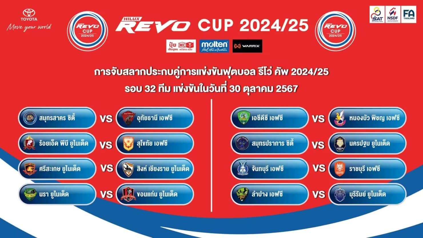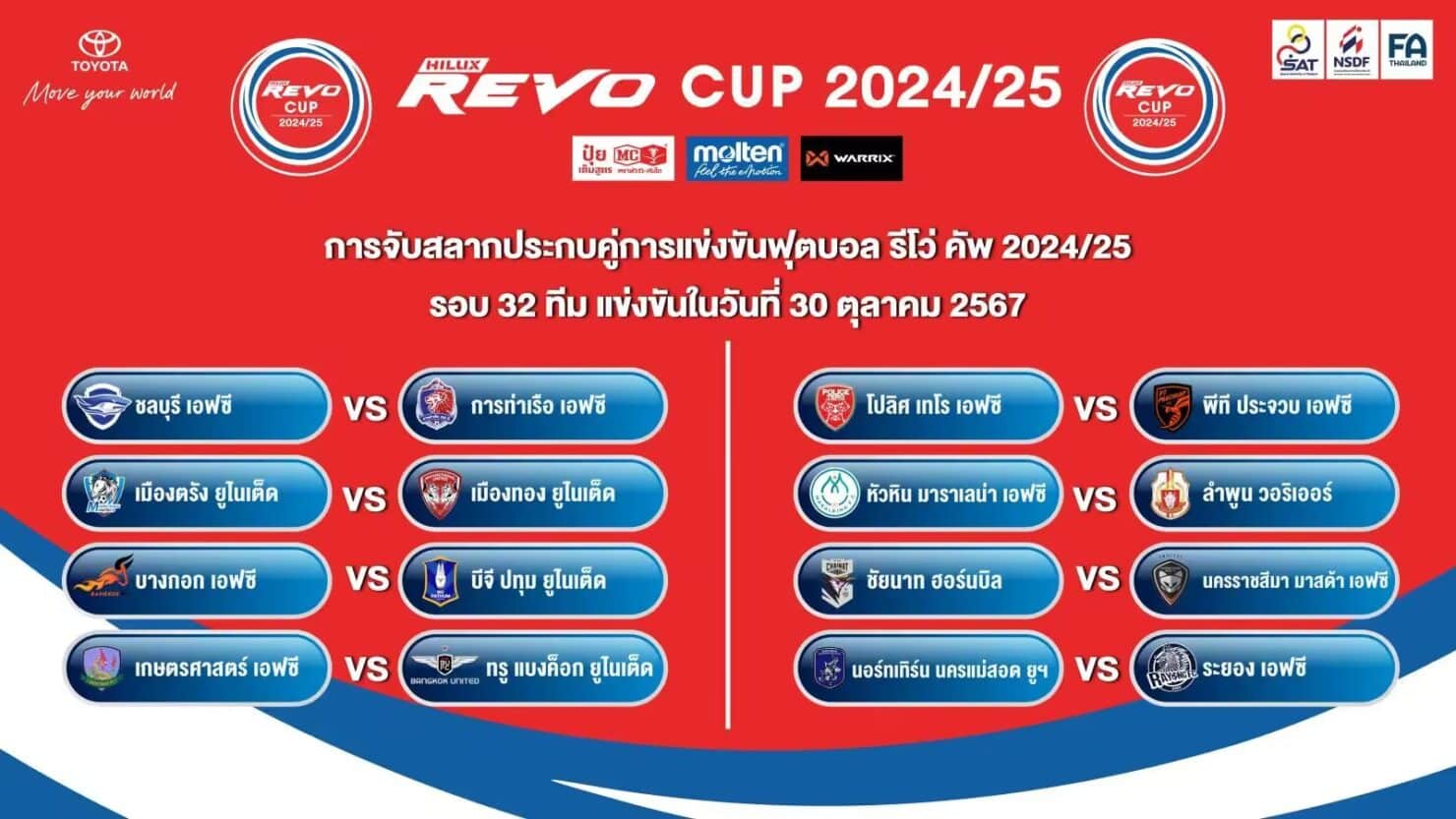 โปรแกรม ฟุตบอล รีโว่ คัพ 2024/25 รอบ 32 ทีมสุดท้าย วันที่ 30 ตุลาคม 2567